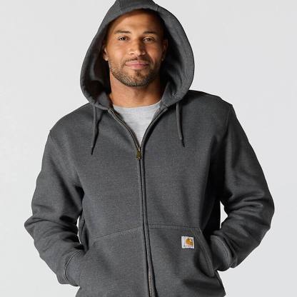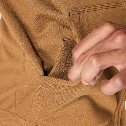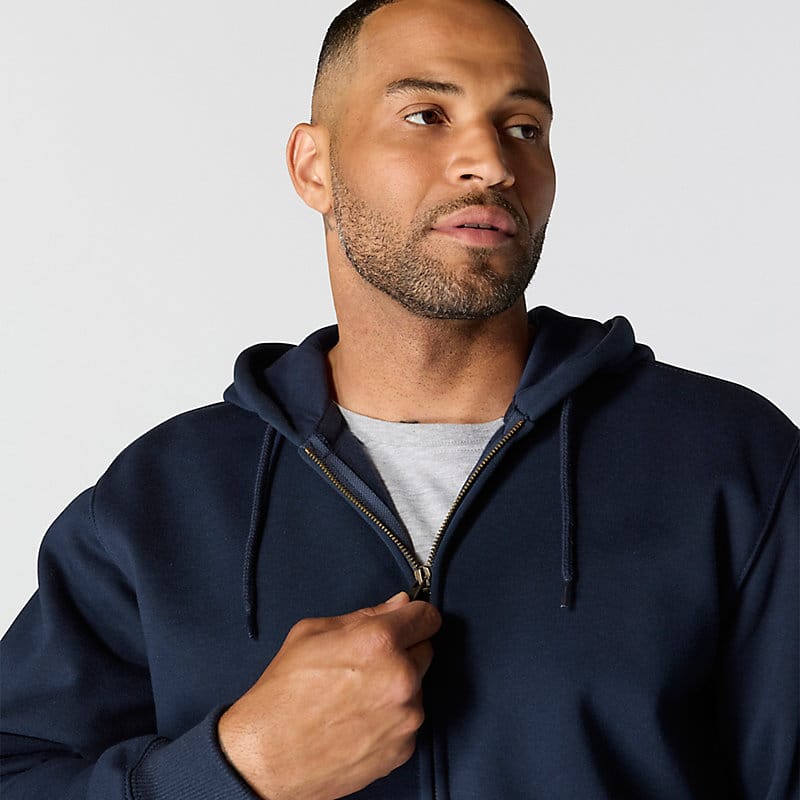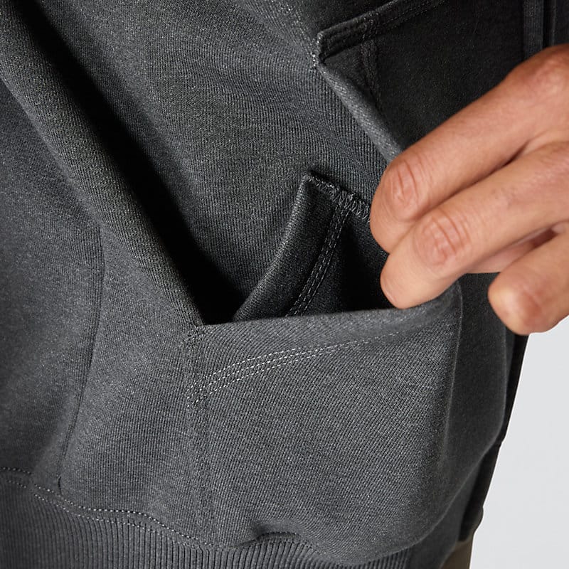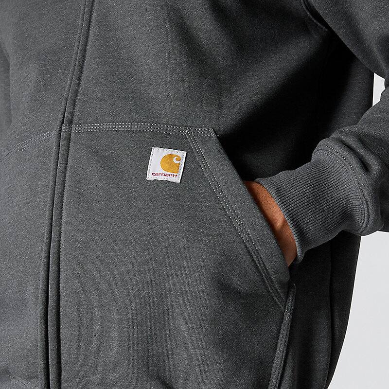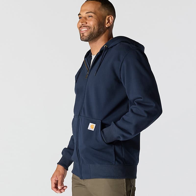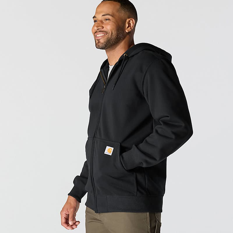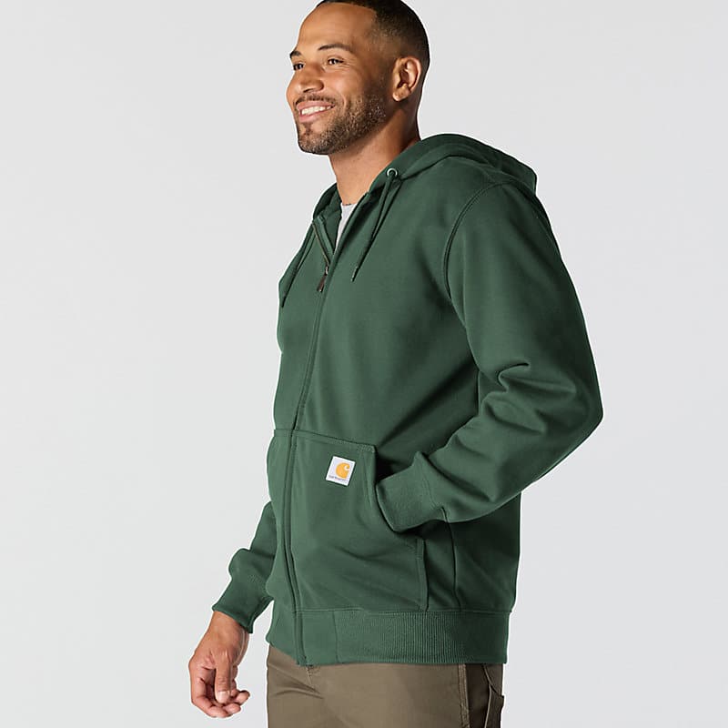 Don't let a little wet weather slow you down. This men's zip-hoodie gives you the familiar comfort of a favorite sweatshirt with the added benefit of keeping you dry in light rain. There's a hidden security pocket inside one of the two handwarmer pockets in the front. Previously known as the Rain Defender® Paxton Heavyweight Hooded Zip Front Sweatshirt