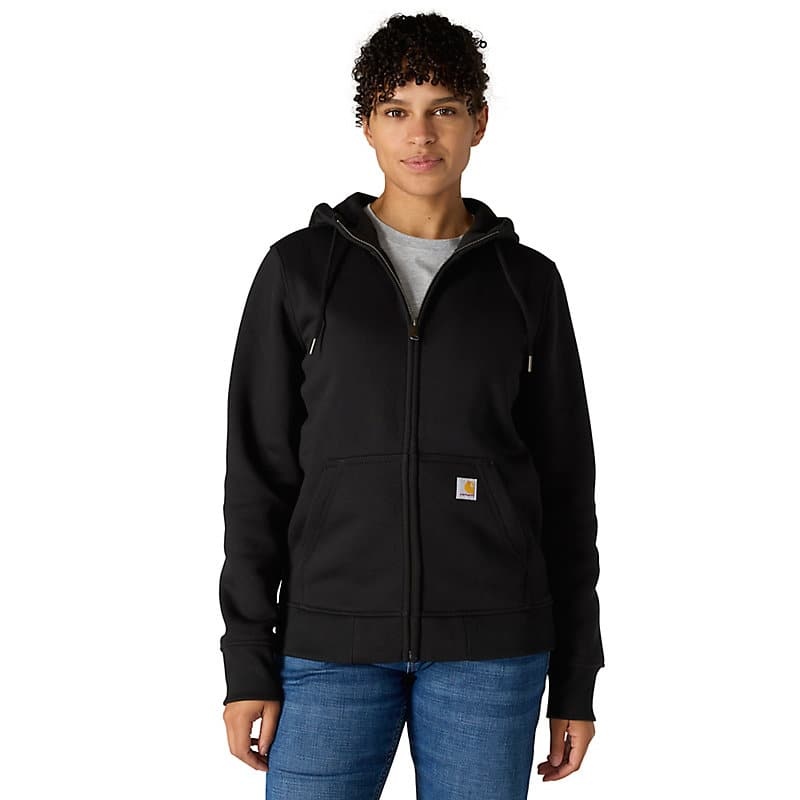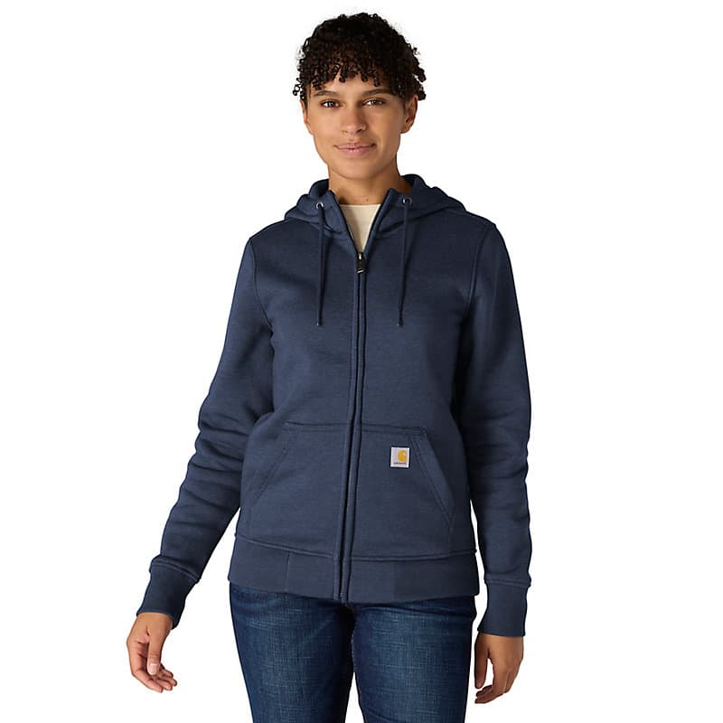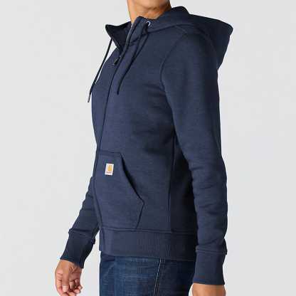 This women's hoodie has the soft feel of a favorite sweatshirt with warmth and durability that you would expect with a Carhartt garment. It's made of heavyweight fleece, with a relaxed fit that allows for easy layering. A kangaroo pocket in the front gives you a place to warm your hands.