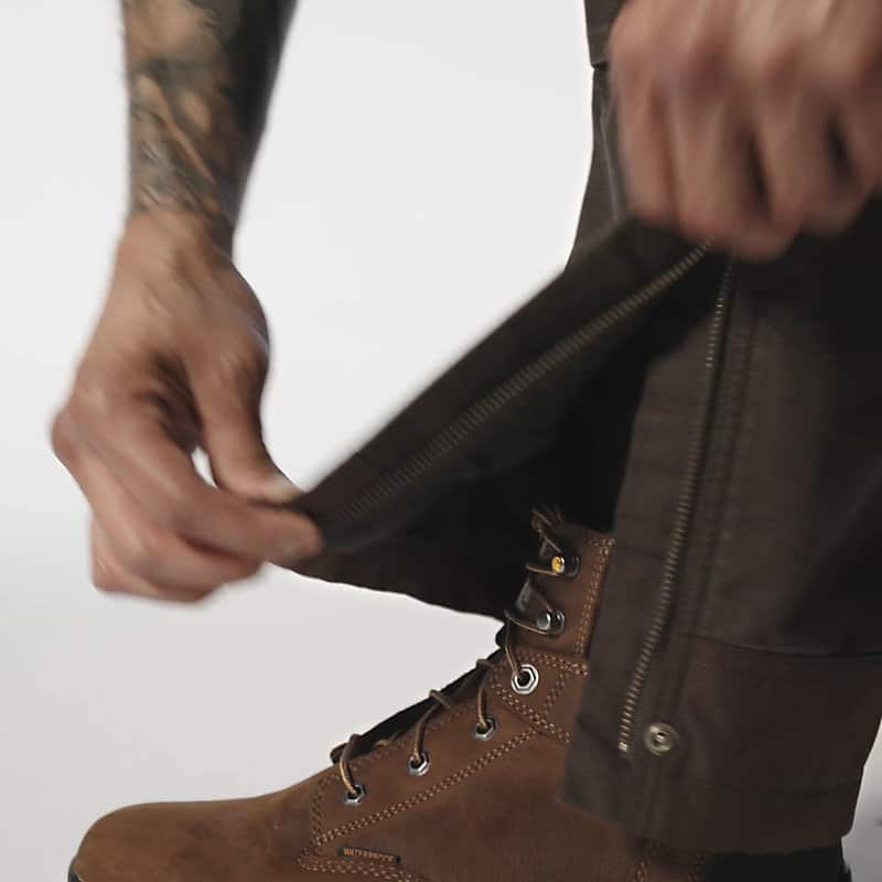 An update to one of our most popular lined bibs, the R27, these men's insulated bib overalls were designed using feedback from our Carhartt Crew. Made to hold their own through cold, wind, and light rain, they're the hardest-working overalls around with our heavyweight cotton duck and lined with lightweight 3M™ Thinsulate™ insulation for exceptional warmth. Reinforced kick panels, an updated, longer double knee, and triple stitching help ensure durability for the long haul. Compatible with the Carhartt Knee Pad.