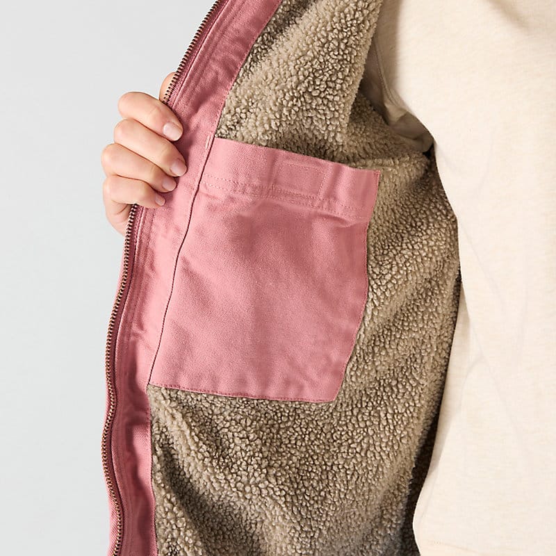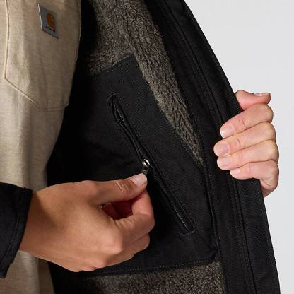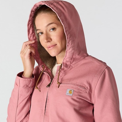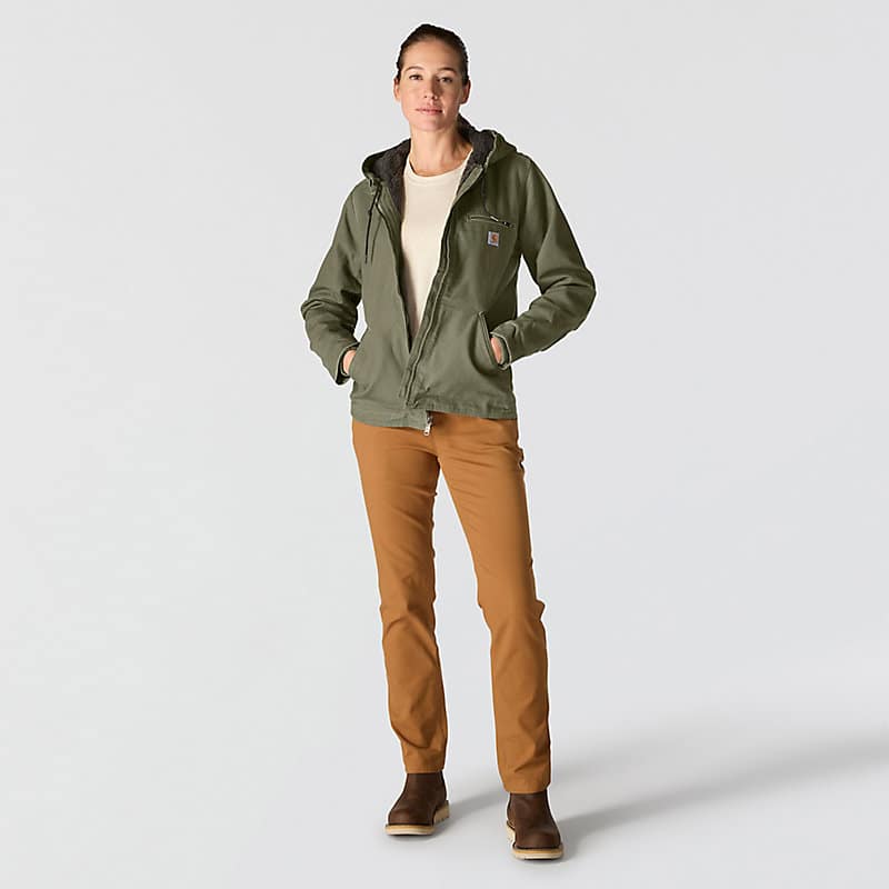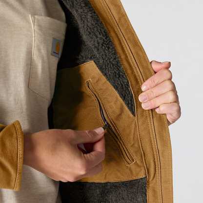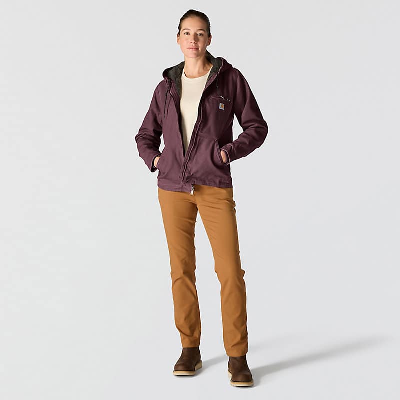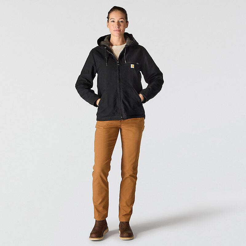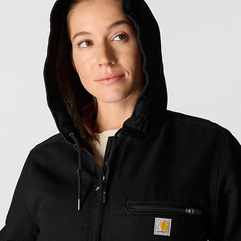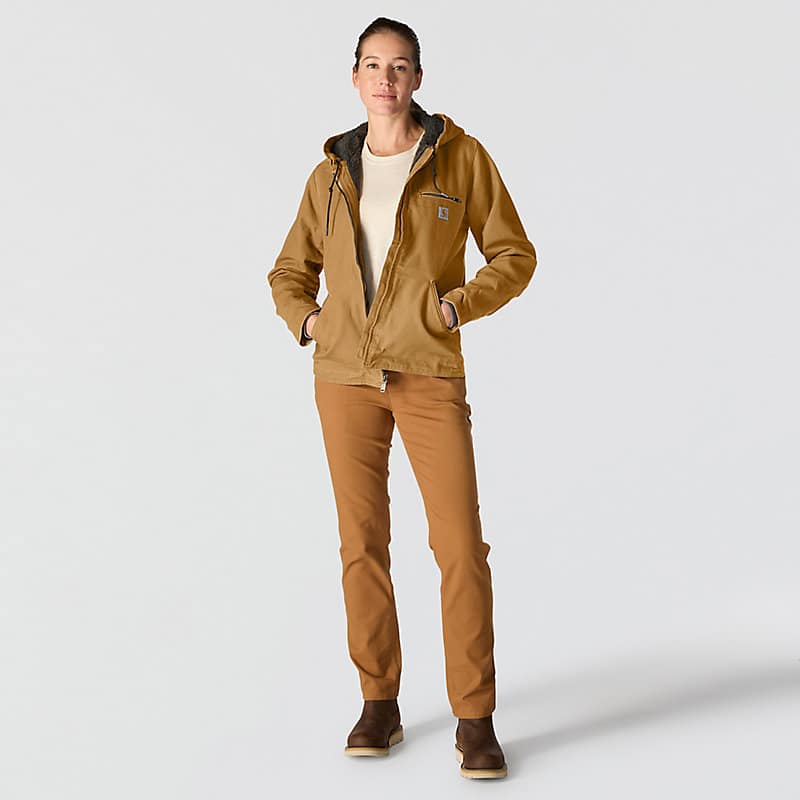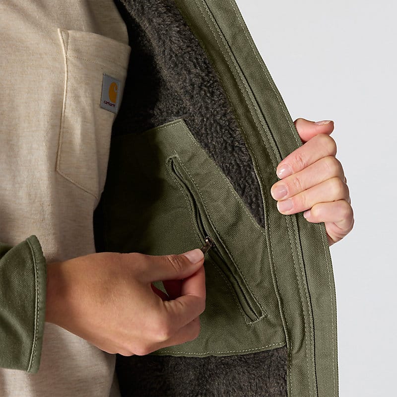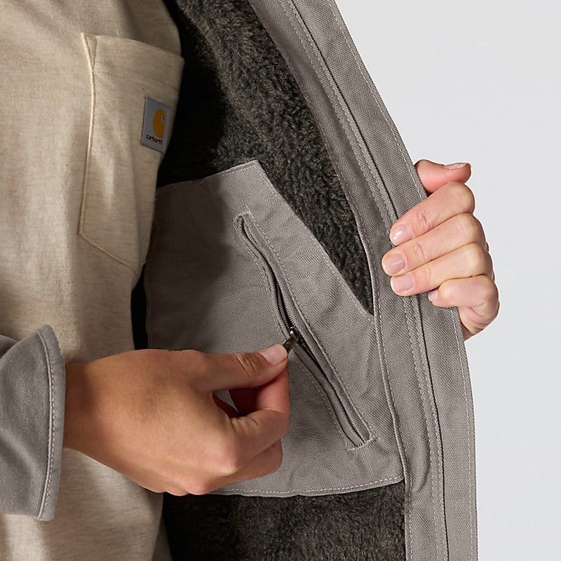This women's sherpa lined jacket is the ideal combination of classic Carhartt style and legendary Carhartt durability. Our signature cotton duck fabric provides a tough exterior while the soft sherpa jacket lining provides warmth.