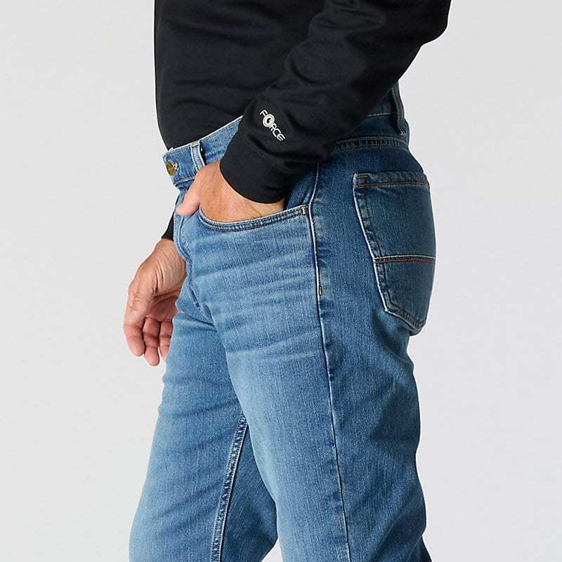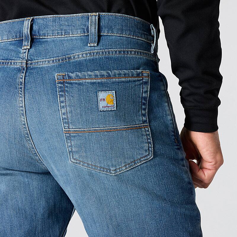 Safety doesn't have to come at the cost of comfort. These men's jeans hold up to NFPA 2112 and MFPA 70E standards while keeping you comfortable long beyond clock-out. They're made of FR denim with enough flex to bend, stretch, and move. The straight-leg jeans are cut for a relaxed fit, with extra room to move in the seat and thigh.