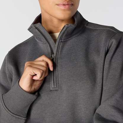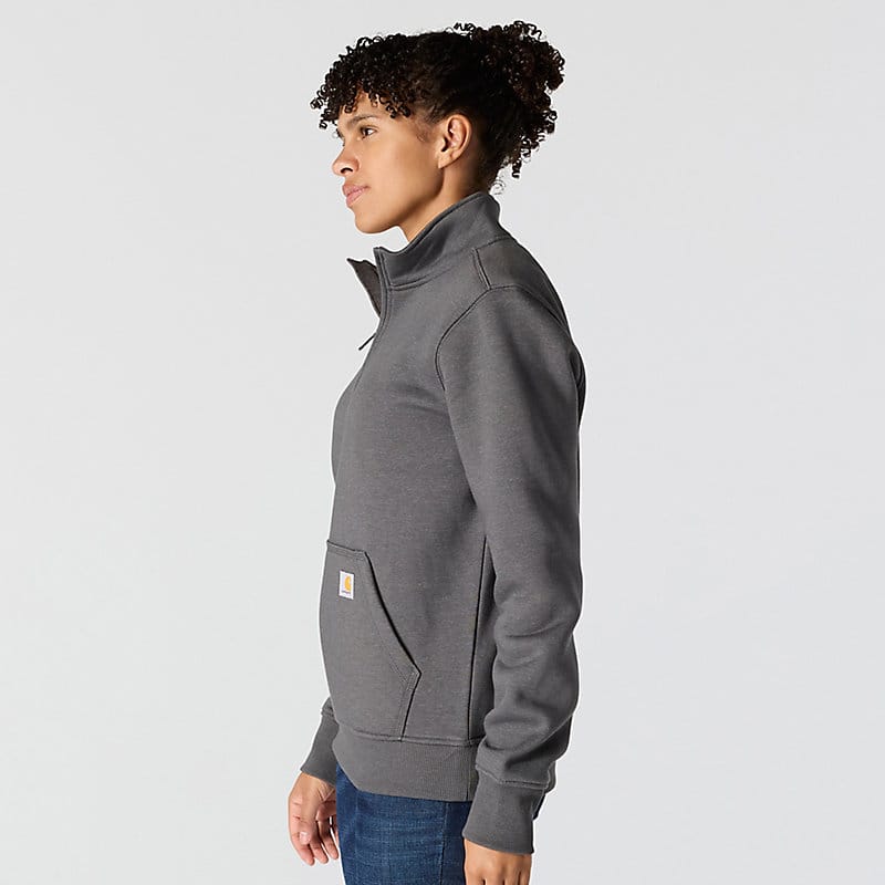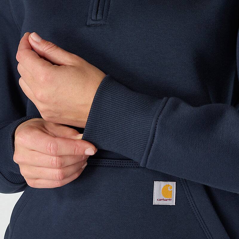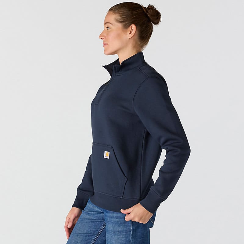 From early morning chores to late-night shifts, fight the chill in this women's quarter-zip sweatshirt. A midweight cotton blend offers everyday versatility, while a rib-knit waist and cuffs keep cold air out. Front pockets provide a place to warm your hands.