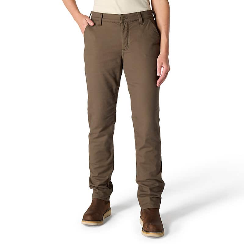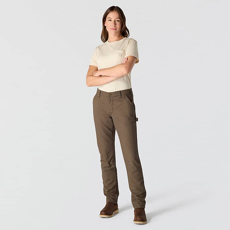 When the job has you outside on cold winter days, these women's fleece-lined work pants offer the warmth you need to stay comfortable. Durable stretch canvas, a flexible waistband, and the relaxed fit allow for unrestricted movement with a higher rise in back for added coverage. Multiple pockets keep small tools and everyday carry items within reach.