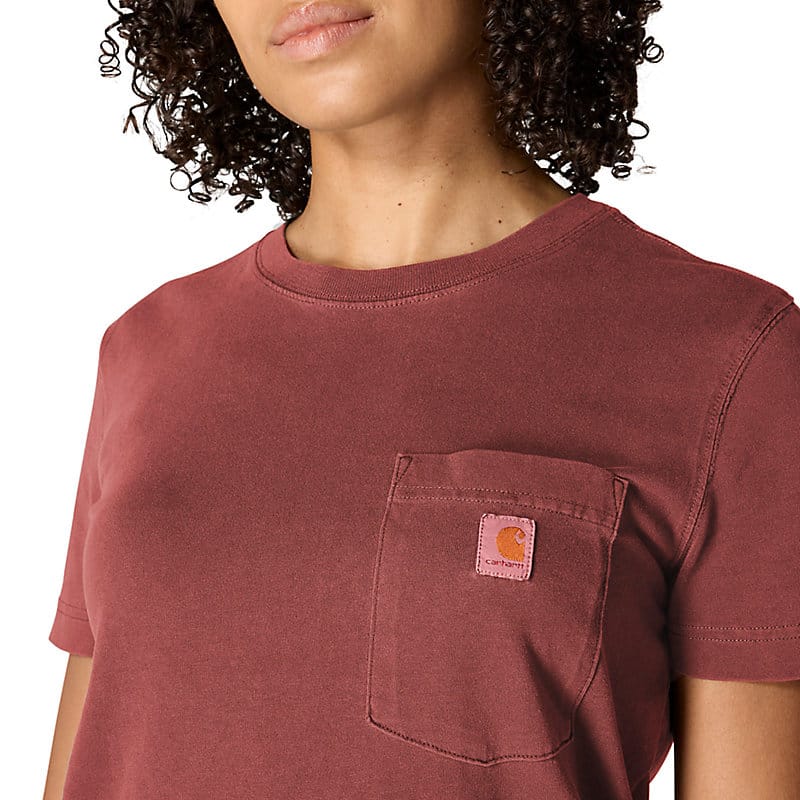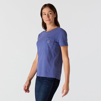 A century of tough jobs and even tougher folks have built the Carhartt name. This women's pocket t-shirt honors that legacy with a chest pocket and a worn-in, garment-dyed look. Cotton feels lightweight and soft from first wear.