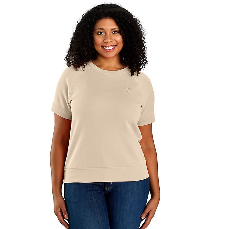When the warmth of a jacket is overkill, this women's Carhartt short-sleeve sweatshirt feels just right. Raglan sleeves create a flattering fit, and a rib-knit waist adds casual style that looks and feels great with a pair of jeans.Powered by TENCEL™ fibers for an incredibly soft, comfortable feel that’s equally tough and durable. TENCEL™ Lyocell fibers are derived from sustainable wood sources through sustainably managed forests.