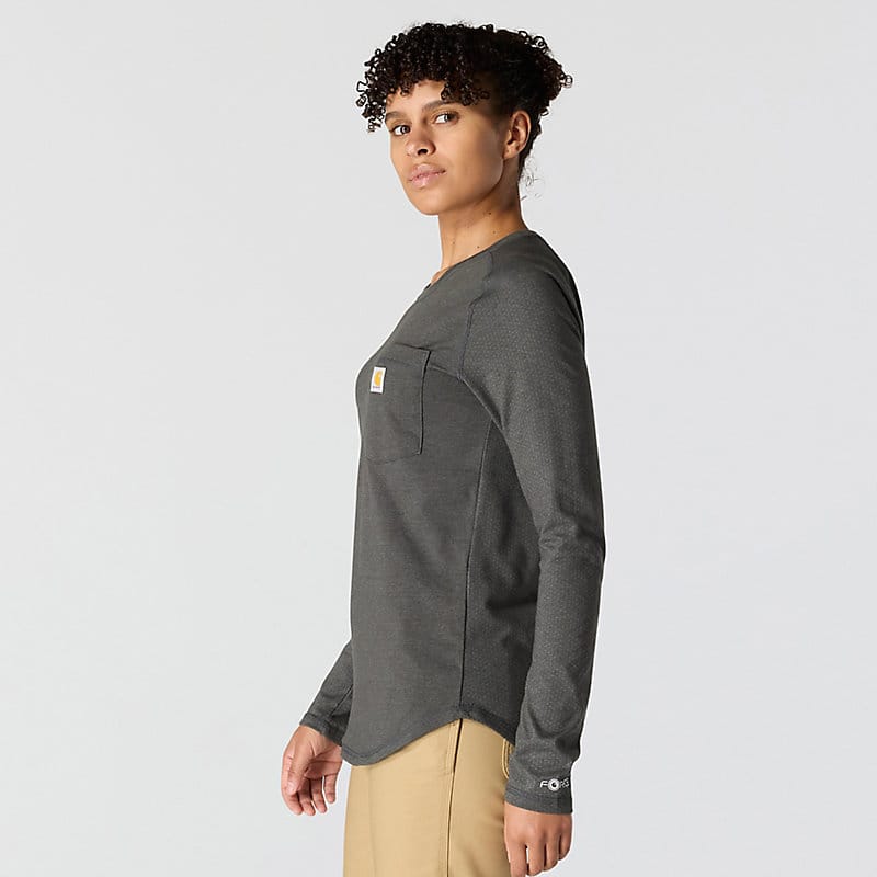 An everyday tee with Carhartt pride, this women's long-sleeve t-shirt keeps you cool and comfortable on the job or off. Midweight cotton jersey is sweat-fighting and fast-drying. A relaxed fit gives you room to move.