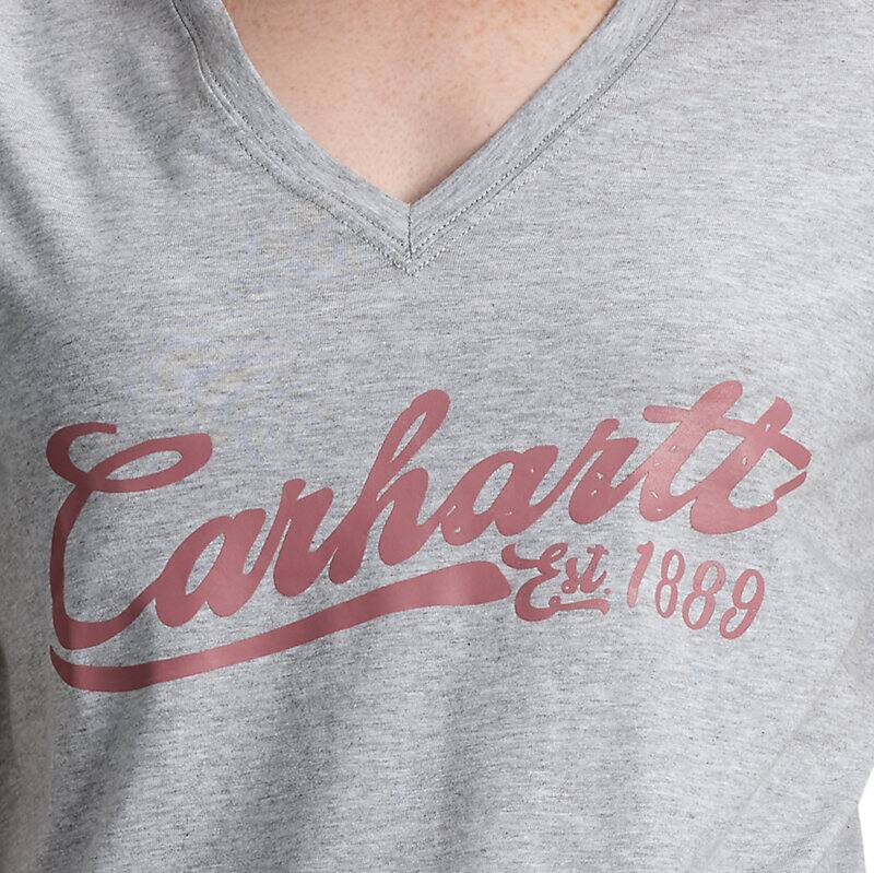 Soft and lightweight, this women's V-neck t-shirt redefines what comfort means in workwear. Made from breathable TENCEL™ fibers that don't sacrifice durability. Built for a relaxed fit, with a Carhartt graphic on the front.