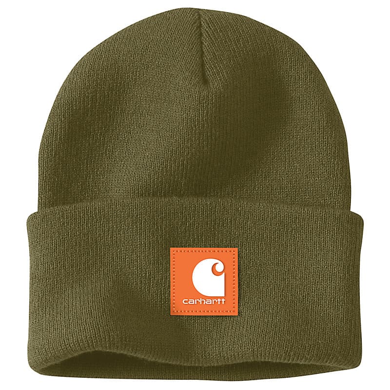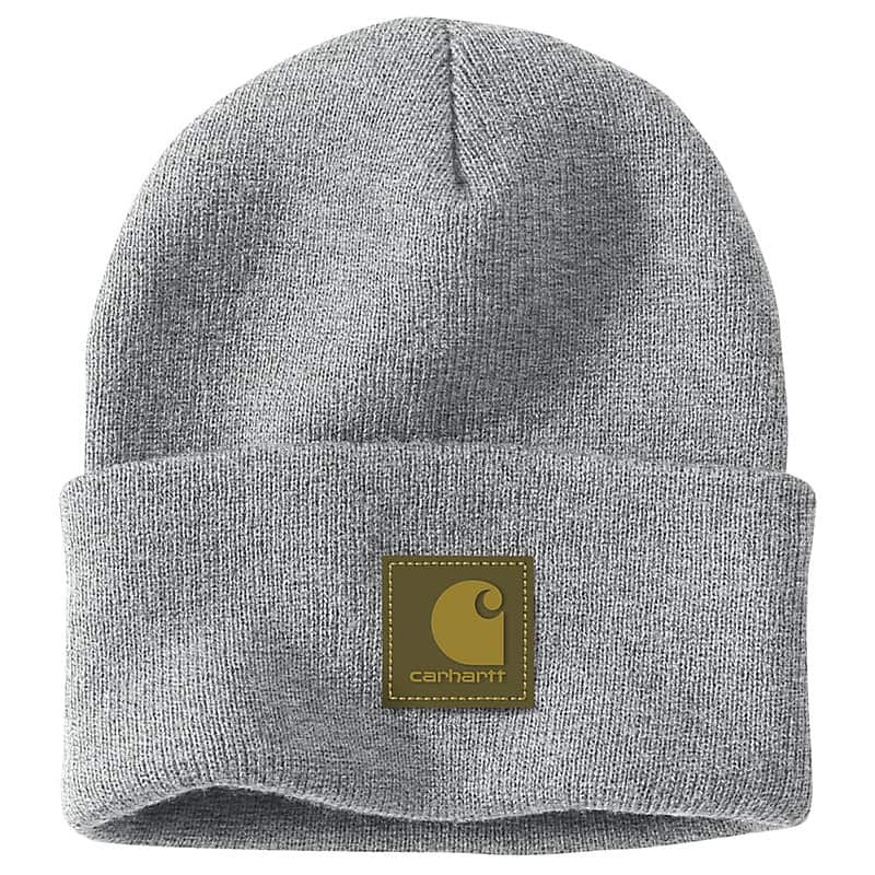The acrylic watch hat is one of the most iconic pieces we make. This version of the A18 has a rubber patch that matches the color of the beanie. It's made of soft, stretchy rib knit that keeps out the cold.