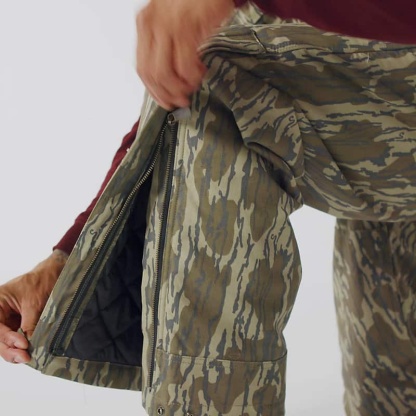 Carhartt durability meets insulated warmth in these men's insulated camo overalls. A combination of built-in flex and an insulated and wind-resistant build stands up to hard work in cold, damp weather. Synthetic insulation in the legs seals in heat without bulk. A seam-to-seam, chap-style front makes them easy to pull on and off over layers. A loose fit includes extra room in the seat and thighs for easy movement.