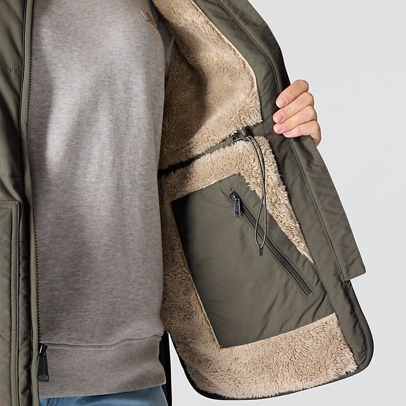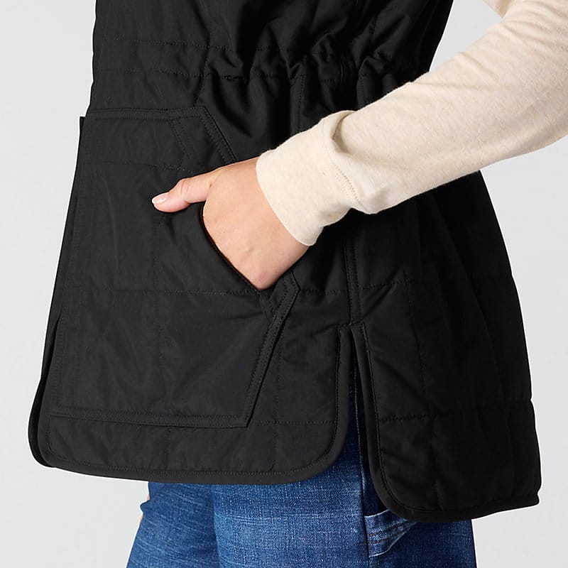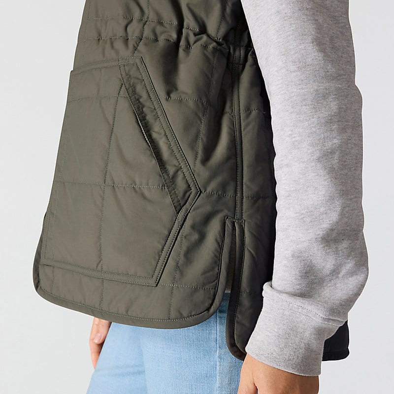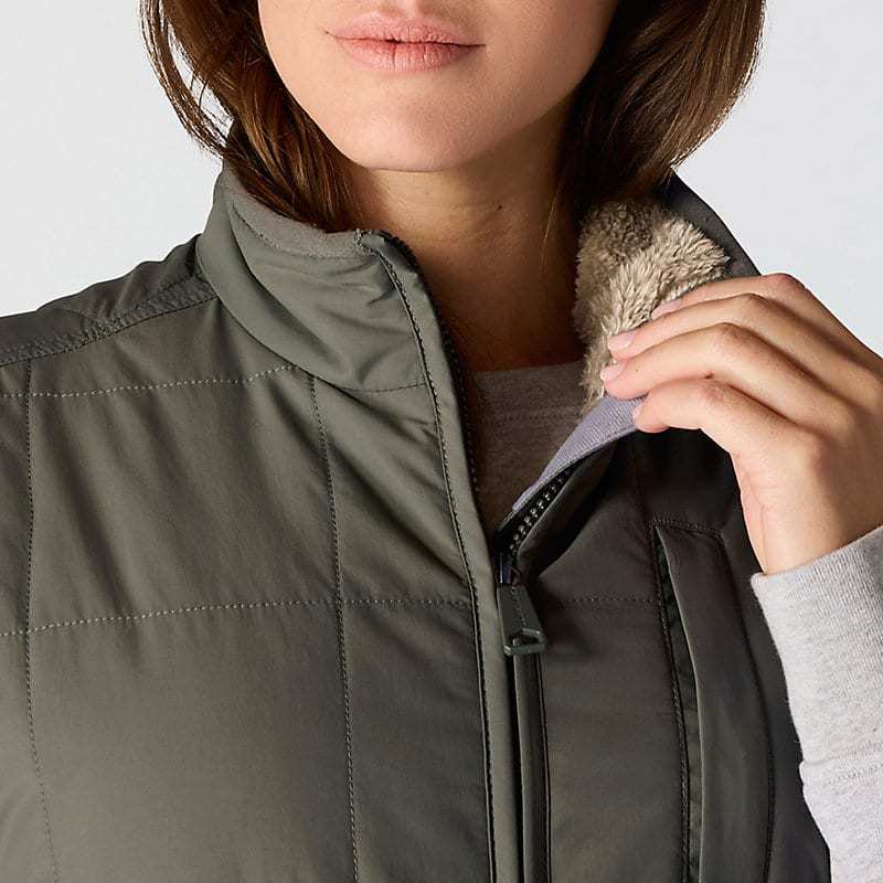 Made for layering up on cool days, this women's insulated vest seals in heat and sheds occasional light rain. A combination of low-profile synthetic insulation and plush sherpa fleece offers cozy warmth. A mix of practical pockets keeps everyday carry items close. A relaxed fit offers a little extra room to move.
