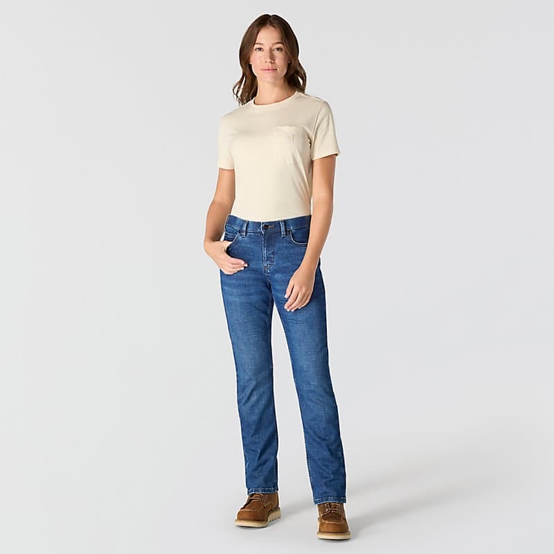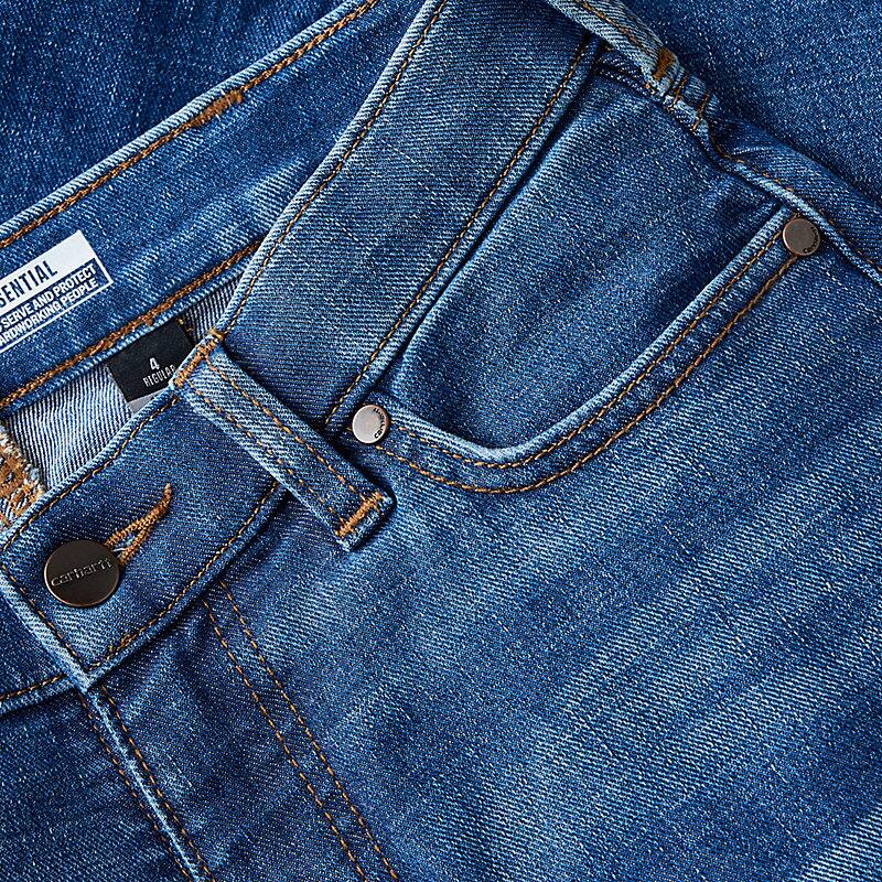 Meet the Essential Jean. Designed to be as comfortable as it is durable with all-day stretch and recovery, this is your new everyday jean. It’s slightly fitted in the hip and thigh with a straight leg opening for a classic style you can wear on the job or on your day off. Its front constructed-to-flatter pocketing helps create a smoothing effect. And essential div like a double-back pocket, double-lined rivets, and belt loops set into the waistband, mean this pair of jeans were made to last you season after season.