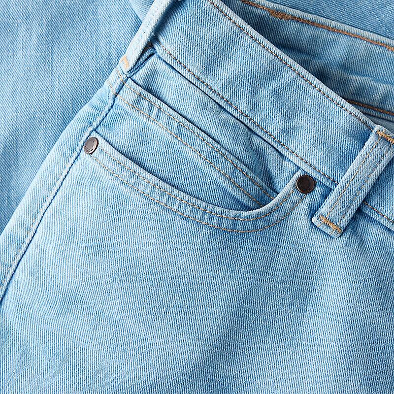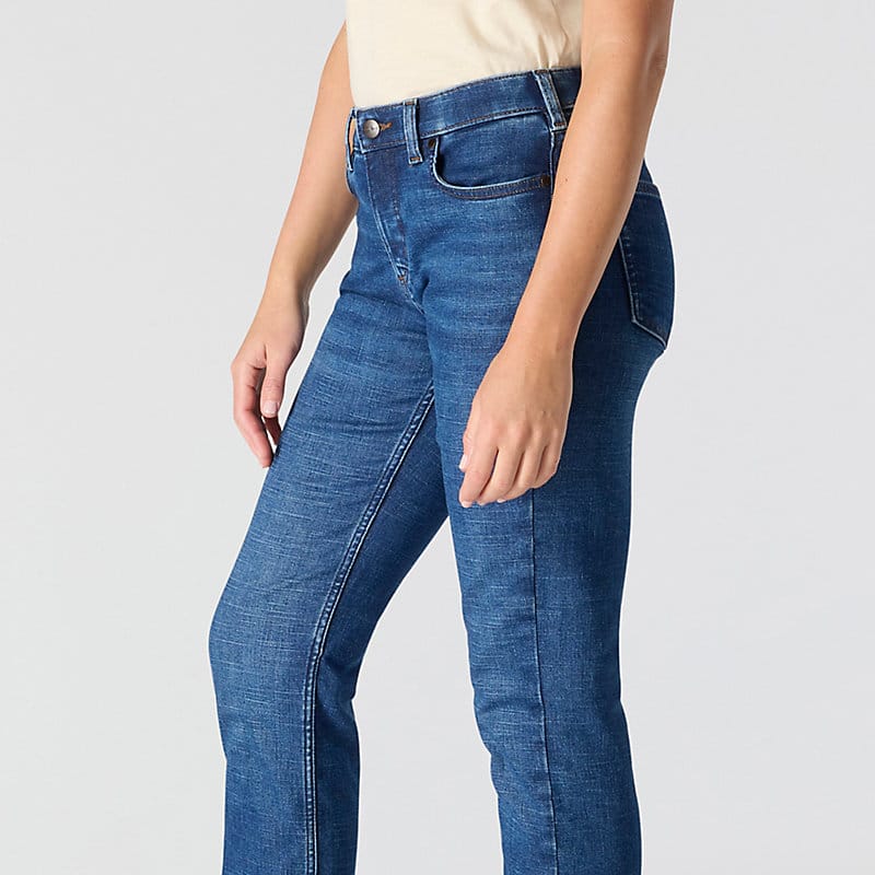 - Mid-rise sits just below the waist, slightly fitted through the hip and thigh, and a straight leg opening