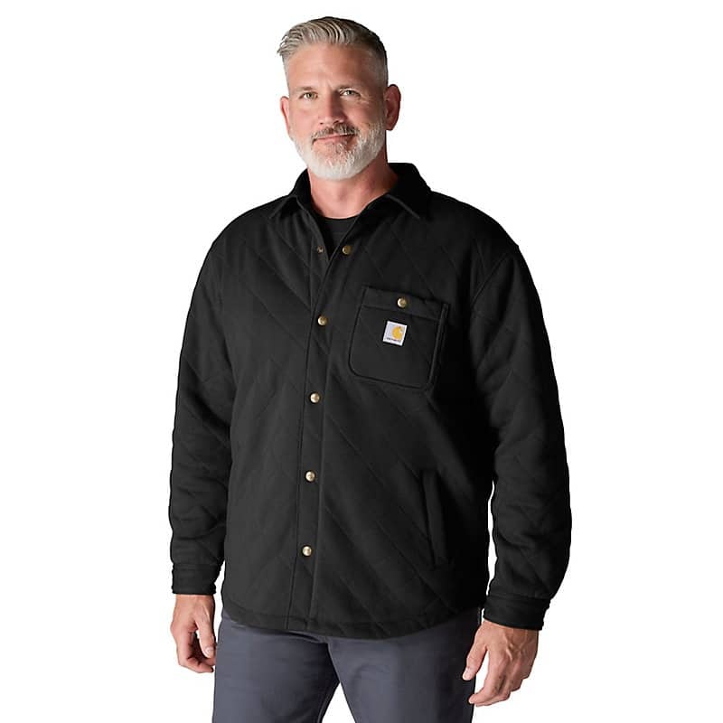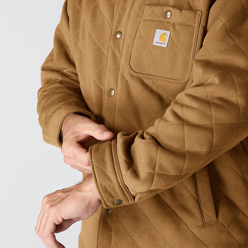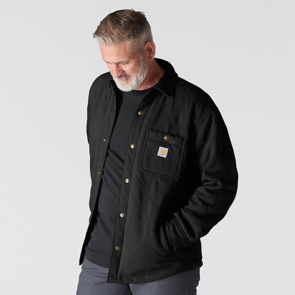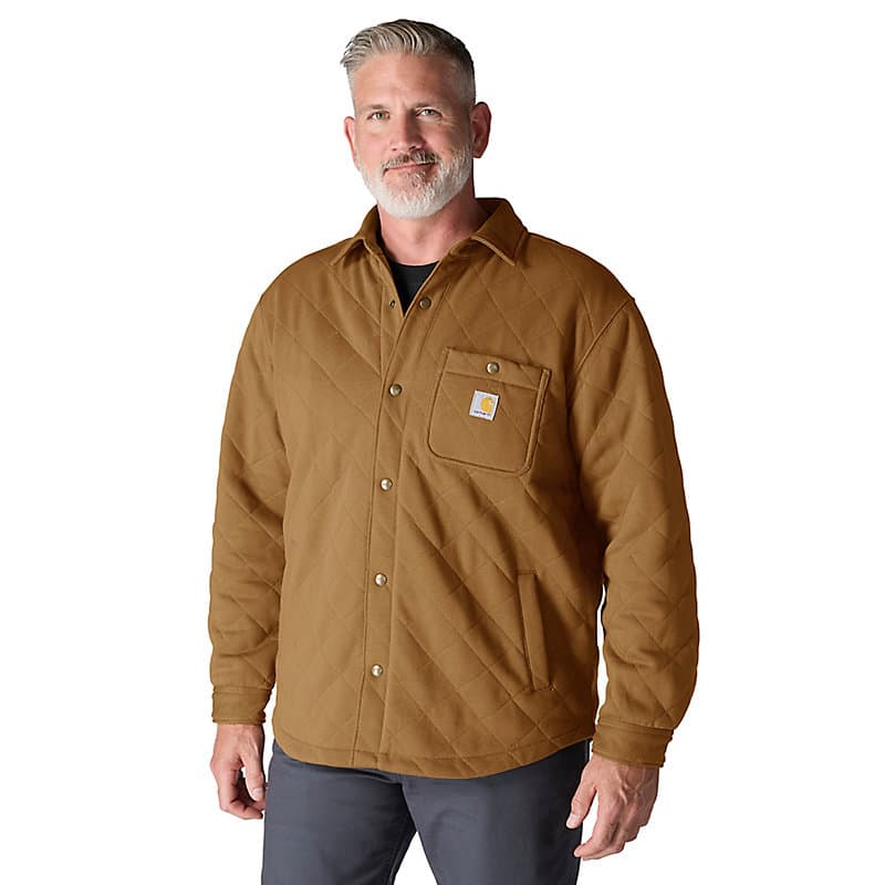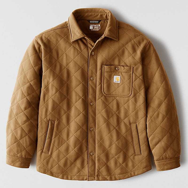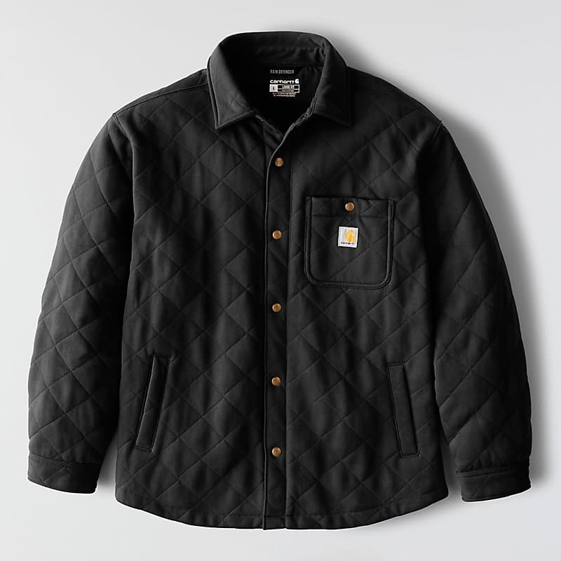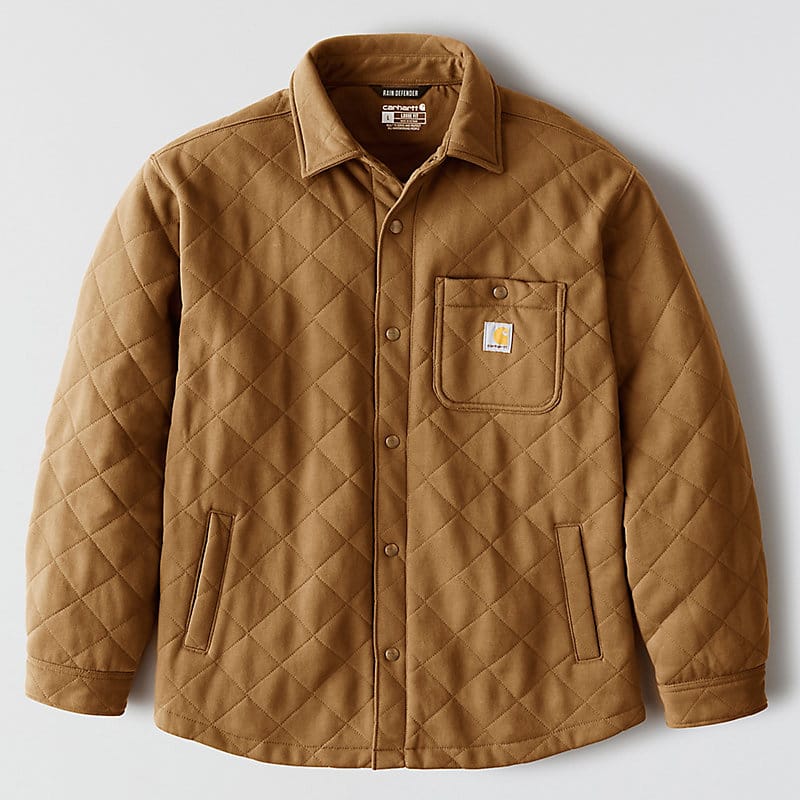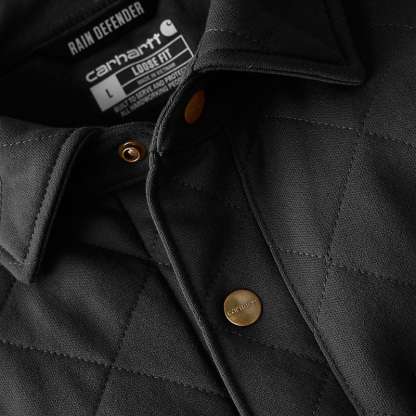 Heavyweight warmth and familiar cotton-blend comfort. This men's quilted shirt jacket has the added benefit of Carhartt Rain Defender® for resisting damp weather. A loose fit allows for easy layering and unrestricted movement.