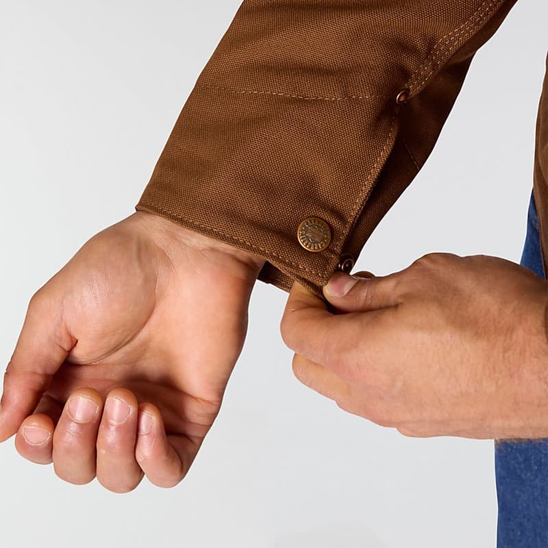 This new Crafted Series duck chore jacket blends the functional shorter silhouette of the Detroit Jacket with the functional patch pockets of the Chore Coat. First launched in the mid-90s and built from classic tried-and-true tested materials like our legendary rugged cotton duck, we’ve evolved the iconic workwear style. With added div like a warm plush sherpa lining, adjustable snap cuffs, and updated two-piece sleeves for extra comfort, this new classic is constructed to move and fit for the next generation of craftsmen.