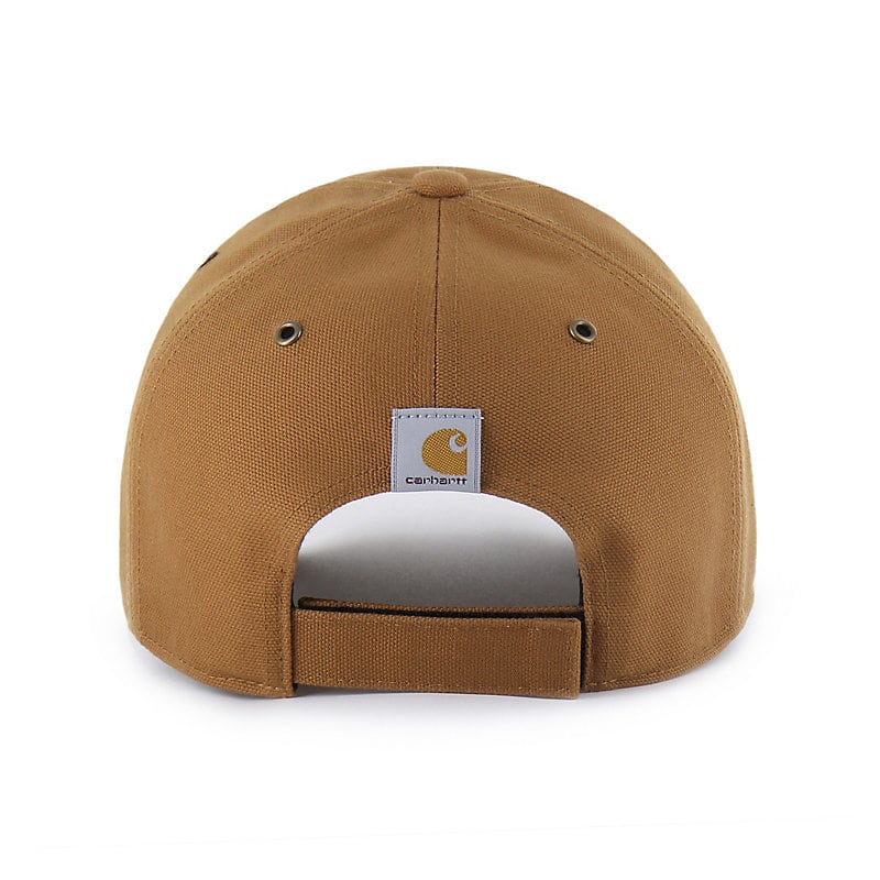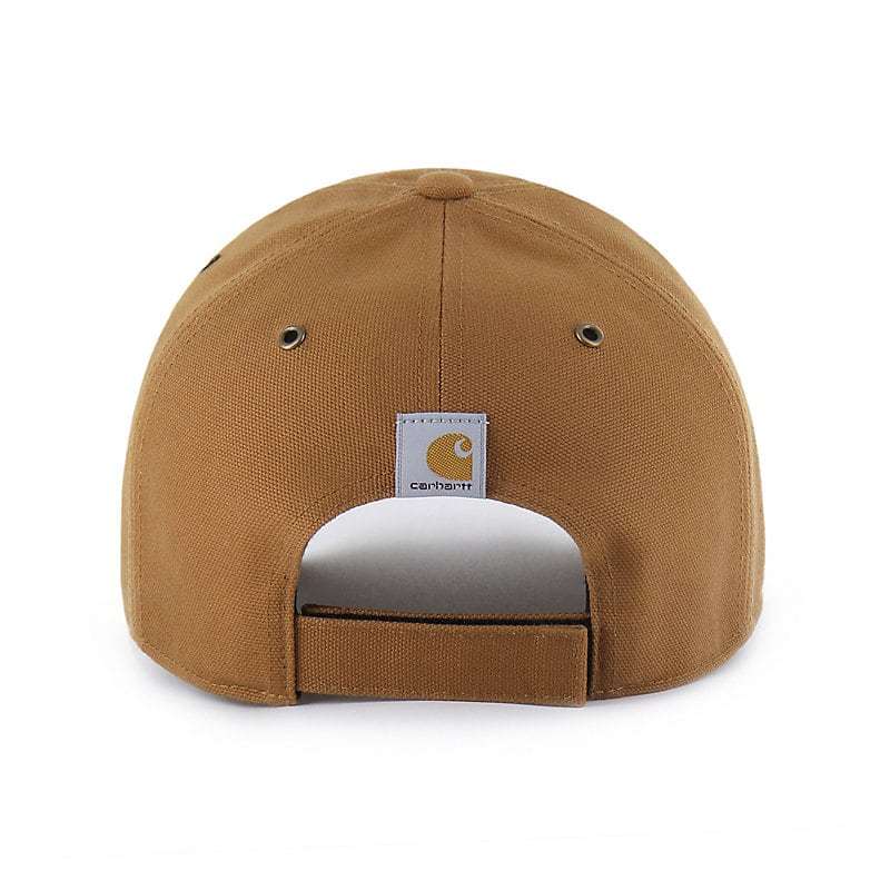 The Carhartt '47 MVP has a structured crown, a curved visor, and an adjustable hook and loop closure. The front has raised embroidery and the back has flat embroidery. Made from Carhartt Duck Cloth unwashed material.