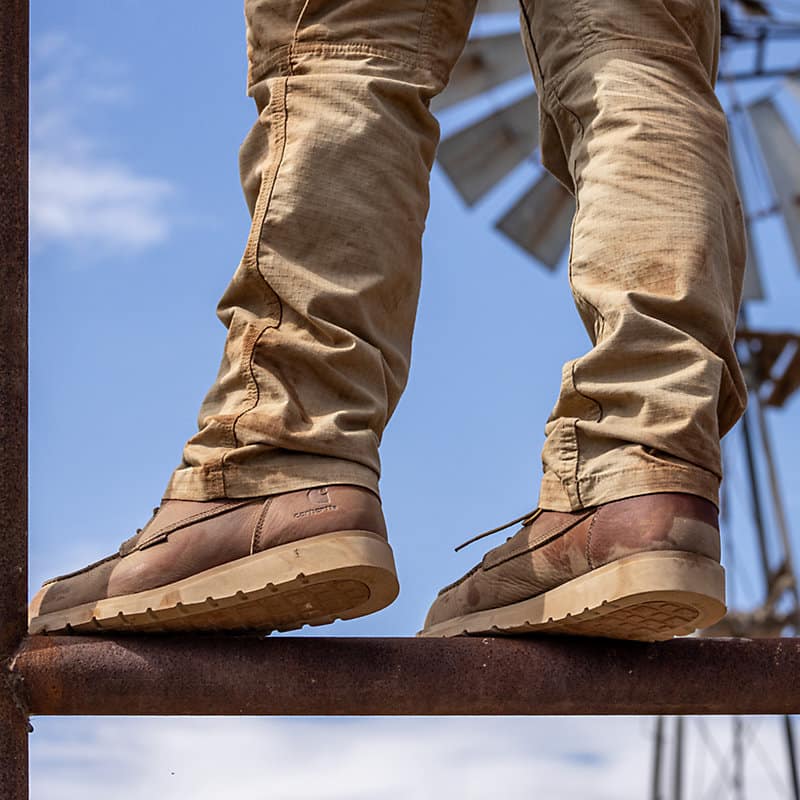 Wedge style boots continue to prove that quality craftsmanship can't be beat. This classic moc toe style is built with premium rugged leather and Storm Defender® waterproof protection so you can take them on your weekend adventures. The dual density rubber outsole provides full ground contact traction and PU Cushion insoles keep you moving in comfort. This boot is a perfect fit for function and versatility.