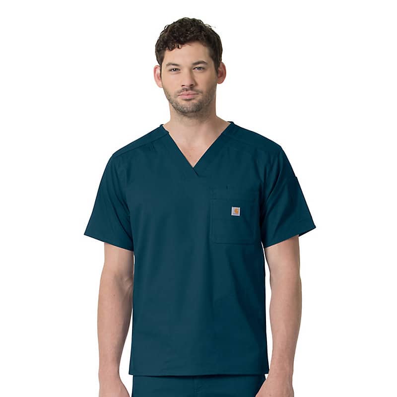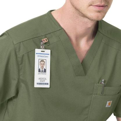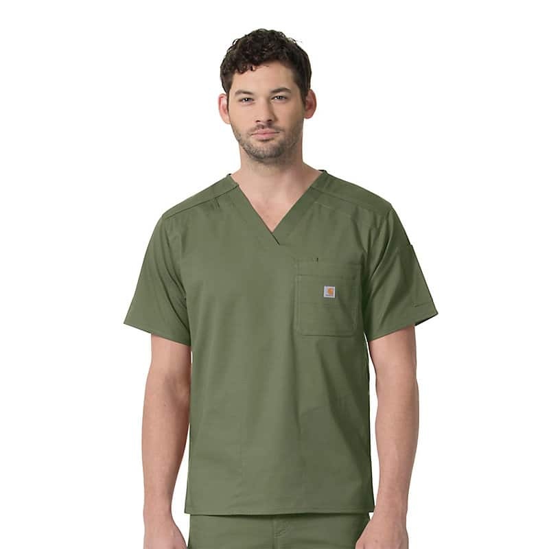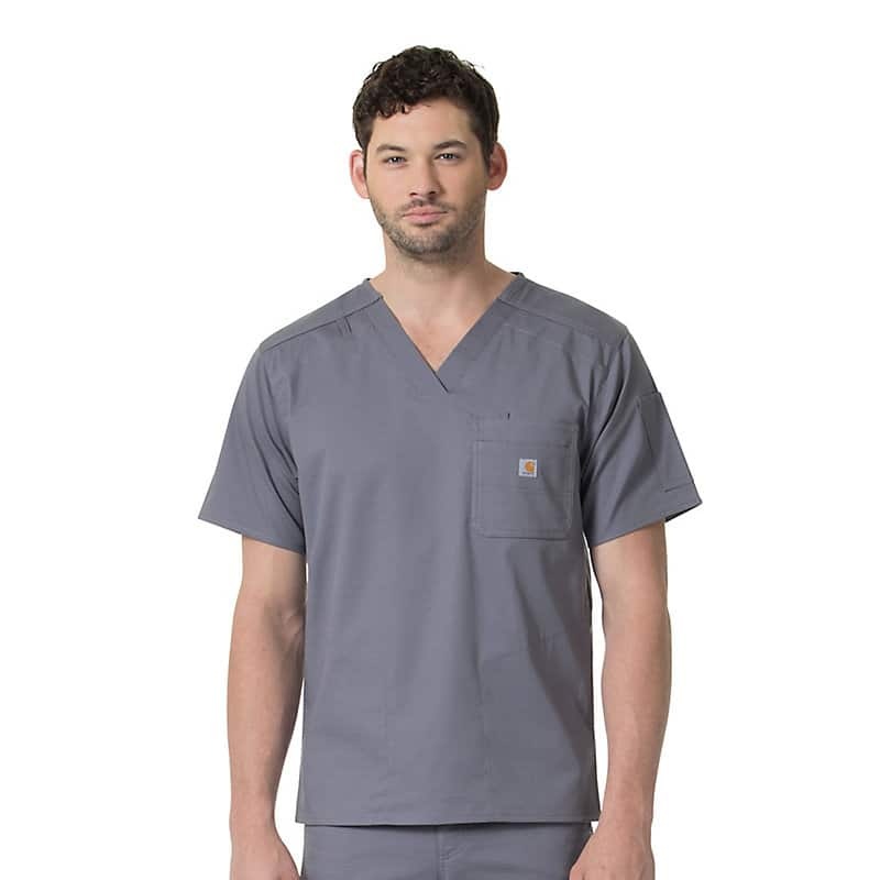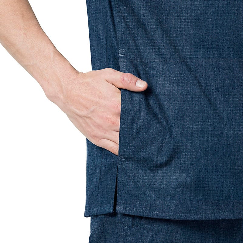 Stay organized throughout your shift in this men's scrub top. A chest pocket complements two front patch pockets to keep everything from your pen to your phone within easy reach. The ripstop cotton-blend build features a back pleat and a split hem for a full range of mobility for reaching, lifting, and bending on the job.