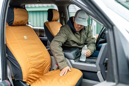 The reasons you wear Carhartt to work are the same reasons you want Carhartt protecting your car seats. This seat cover creates a rugged and reliable first line of defense against rips, tears, spills, stains, dirt, and grime.