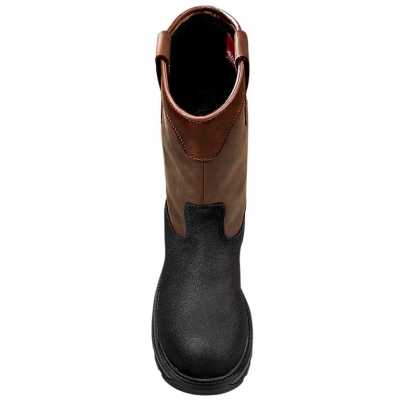 Airport tarmac to construction site, these men's waterproof boots are made for hard work in wet weather. A waterproof, breathable membrane keeps out rain and mud while allowing heat and sweat to escape. An engineered footbed and lightweight midsole provide comfort and cushioning for long days on your feet. The alloy safety toe is made from blended metal and aluminum resulting in a thin lightweight safety toe for strength and comfort all day. It also meets ASTM 2413-18 standards.