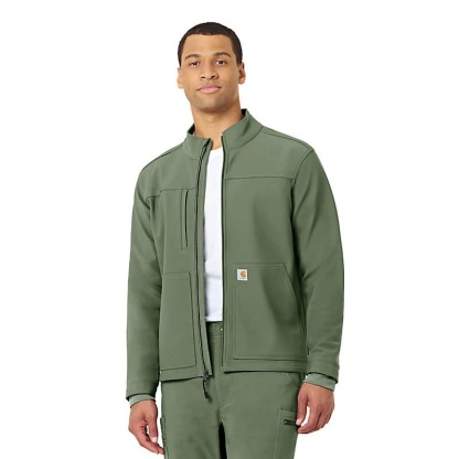 When the shifts are long and the pace is fast, this men's bonded fleece scrub jacket delivers warmth, comfort and easy range of movement with Rugged Flex® stretch technology to help you get the job done. HEIQ ECO DRY technology provides eco-friendly durable water repellency to help keep you dry.