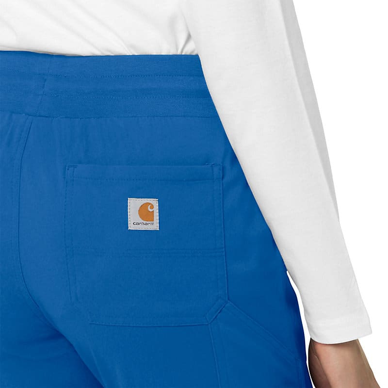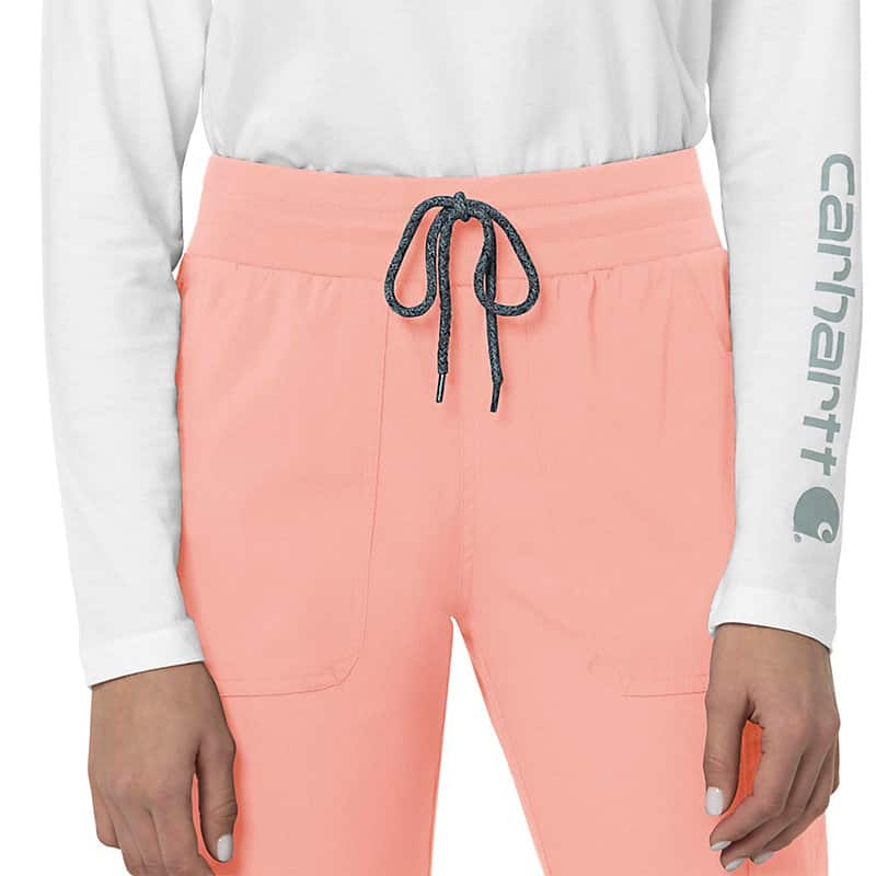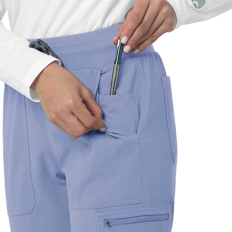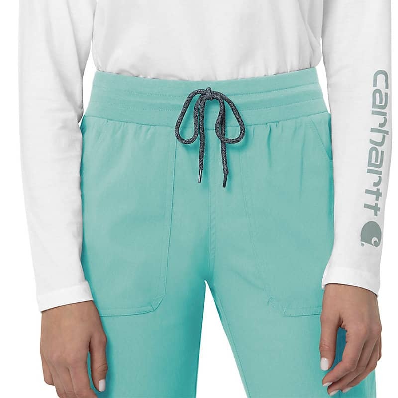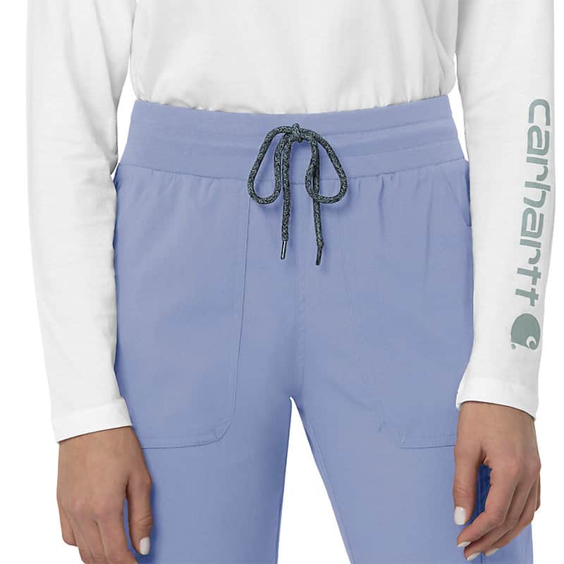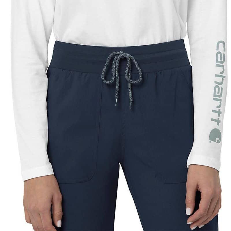 When the shifts are long and the pace is fast, these women's scrub pants deliver comfort and ease of movement to help you get the job done. Polyester fabric with built-in flex repels water and water-based stains. Multiple pockets, including a carpenter pocket with a scissor holder, give you space for your supplies.