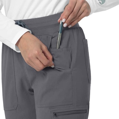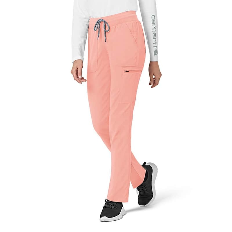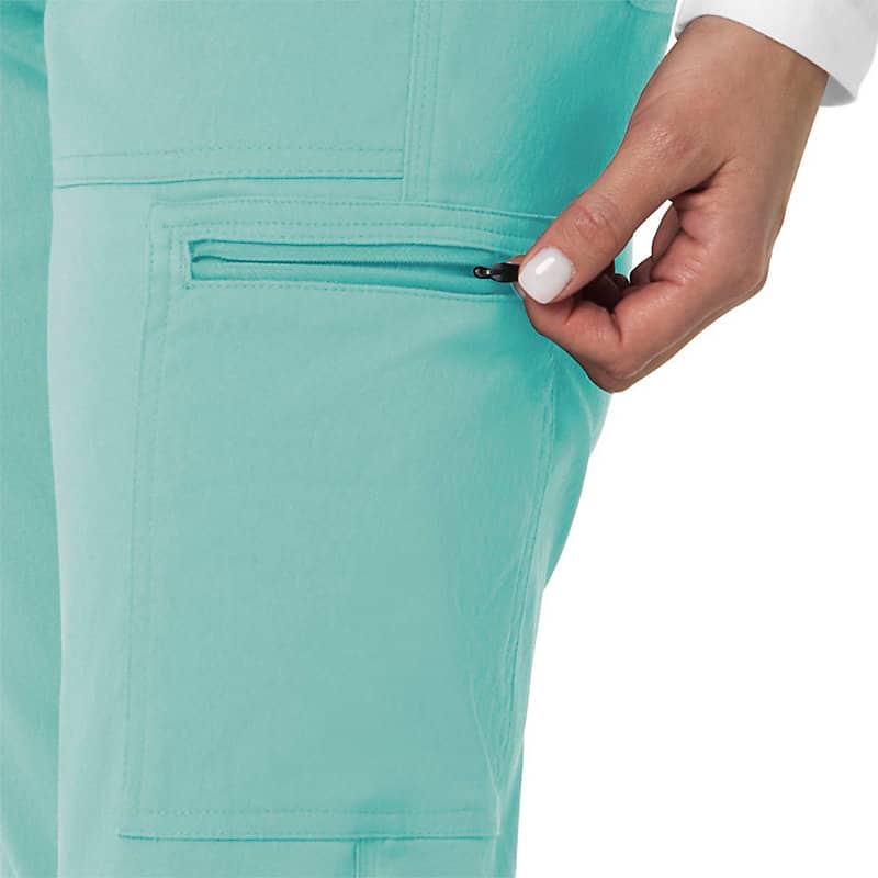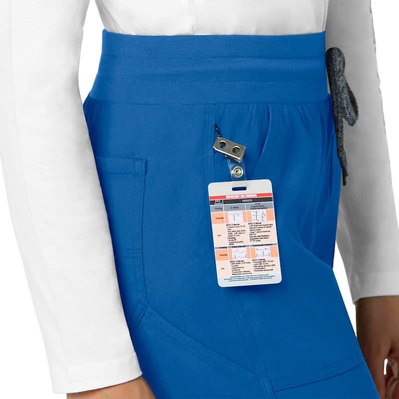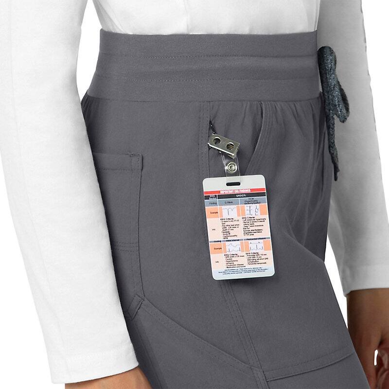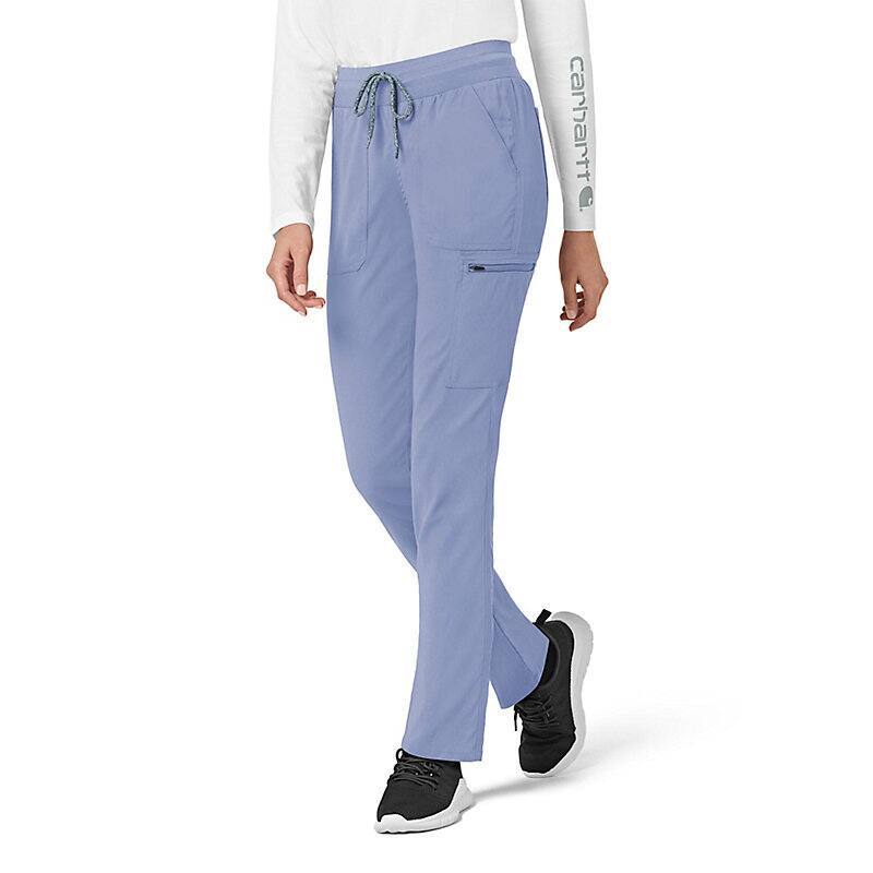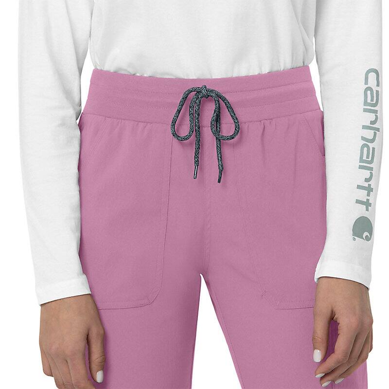 When the shifts are long and the pace is fast, these women's scrub pants deliver comfort and ease of movement to help you get the job done. Polyester fabric with built-in flex repels water and water-based stains. Multiple pockets, including a carpenter pocket with a scissor holder, give you space for your supplies.