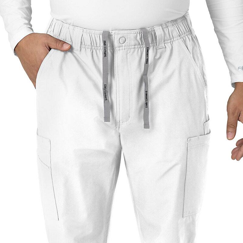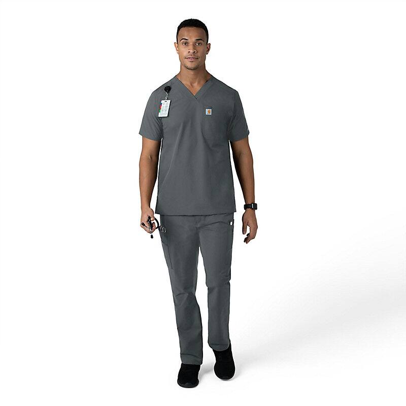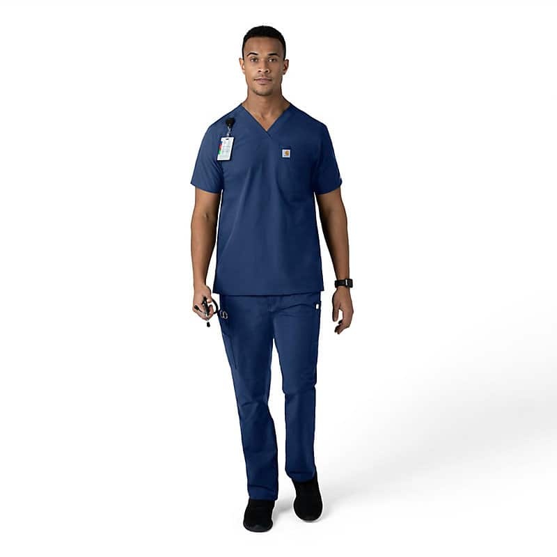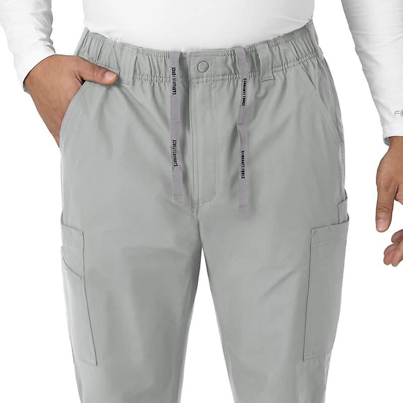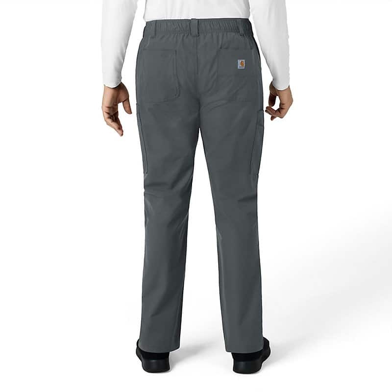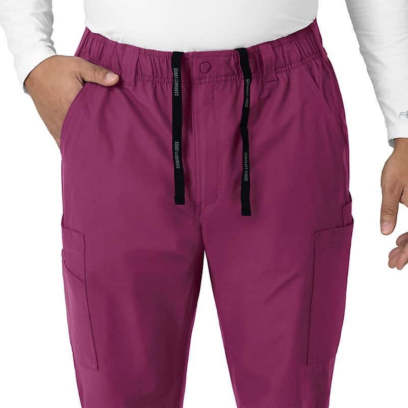 Carhartt Men’s Force Essentials Straight Leg Pant is built with all the features men ask for in medical scrubs. These scrub pants are packed with convenient features like a functioning zipper fly, snap closure, and a full elastic waistband with 7 belt loops total! With the addition of the fully constructed waistband with a drawstring, these scrubs allow you to achieve the perfect fit with every wear. The durable stretch ripstop fabric is reinforced with double-needle stitching at the inseam and added comfort thanks to the wider 7 3/4 leg opening. The fabric is enhanced with FastDry, Rugged Flex Stretch and Stain Breaker Technology so during your hectic shifts the fabric stays dry, moves with you and those inevitable stains are released with ease. Functionality is always a factor when designing Carhartt scrubs and these men’s scrub pants were built with 10 pockets! Two easy to access front and back pockets, a triple cargo pocket and angled top accessory pocket with a pen holder. An additional cargo pocket rounds out all your compartment needs for storing your much needed essentials. You won’t find a more functional pair of men’s scrub pants than this!