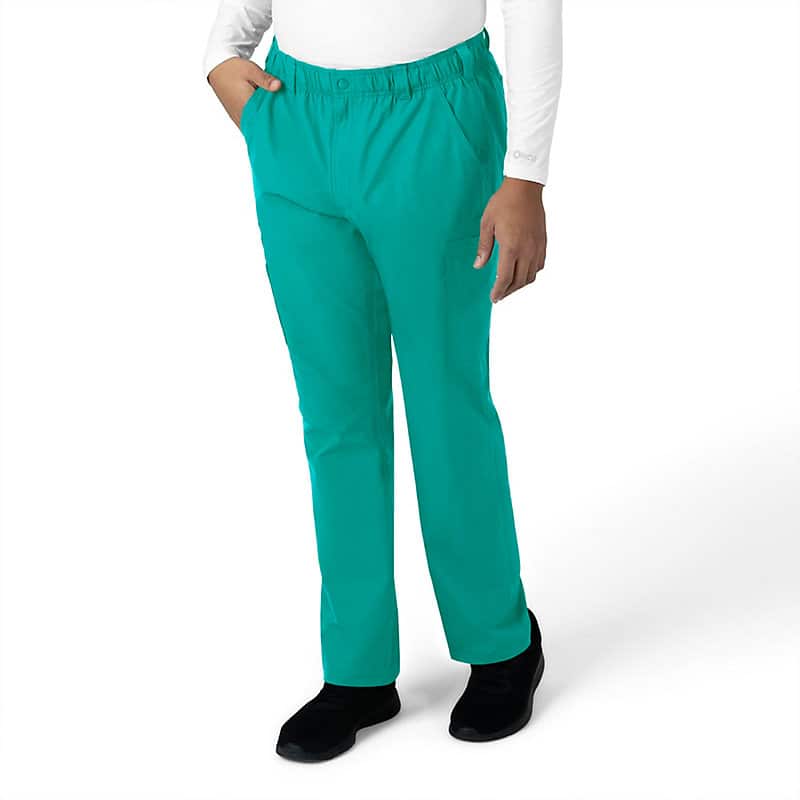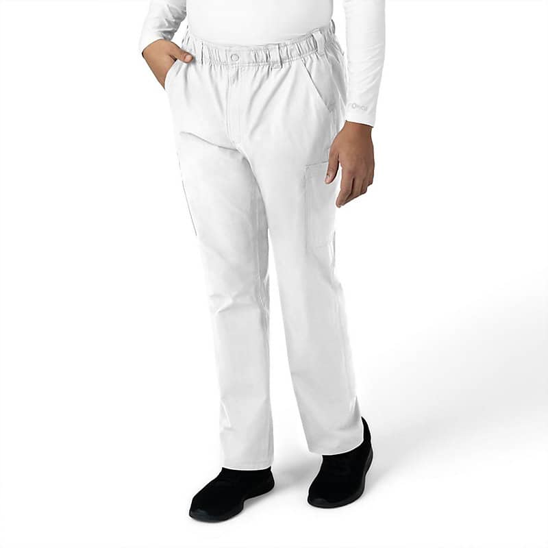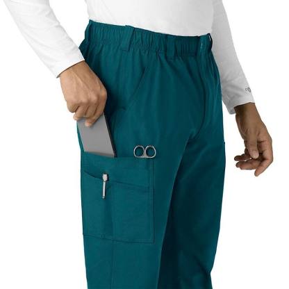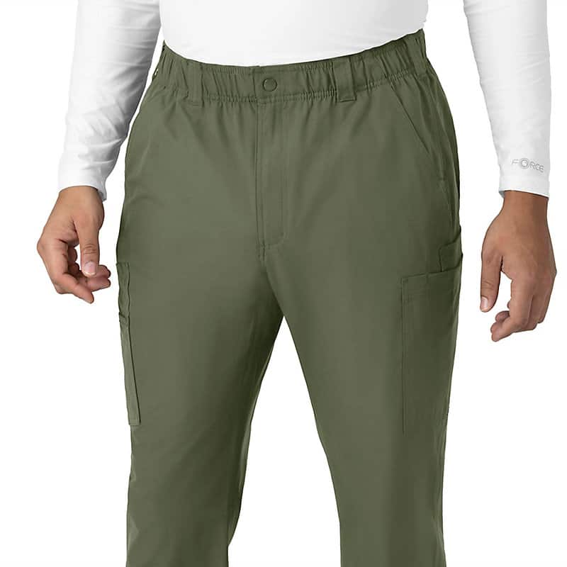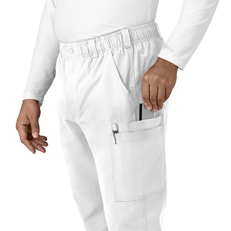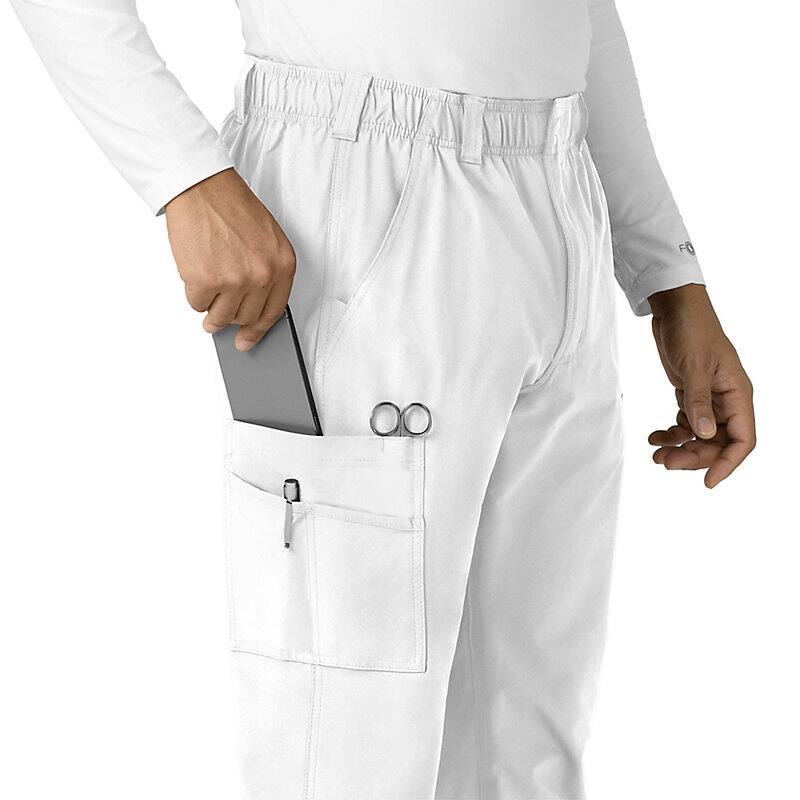 Carhartt Men’s Force Essentials Straight Leg Pant is built with all the features men ask for in medical scrubs. These scrub pants are packed with convenient features like a functioning zipper fly, snap closure, and a full elastic waistband with 7 belt loops total! With the addition of the fully constructed waistband with a drawstring, these scrubs allow you to achieve the perfect fit with every wear. The durable stretch ripstop fabric is reinforced with double-needle stitching at the inseam and added comfort thanks to the wider 7 3/4 leg opening. The fabric is enhanced with FastDry, Rugged Flex Stretch and Stain Breaker Technology so during your hectic shifts the fabric stays dry, moves with you and those inevitable stains are released with ease. Functionality is always a factor when designing Carhartt scrubs and these men’s scrub pants were built with 10 pockets! Two easy to access front and back pockets, a triple cargo pocket and angled top accessory pocket with a pen holder. An additional cargo pocket rounds out all your compartment needs for storing your much needed essentials. You won’t find a more functional pair of men’s scrub pants than this!