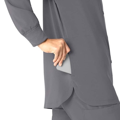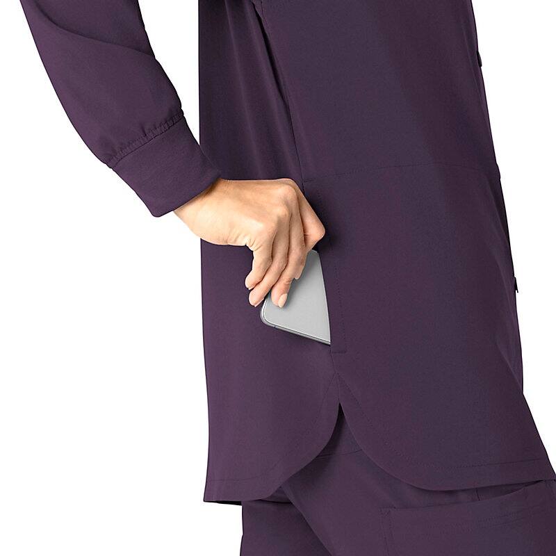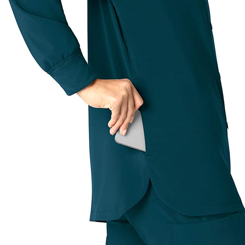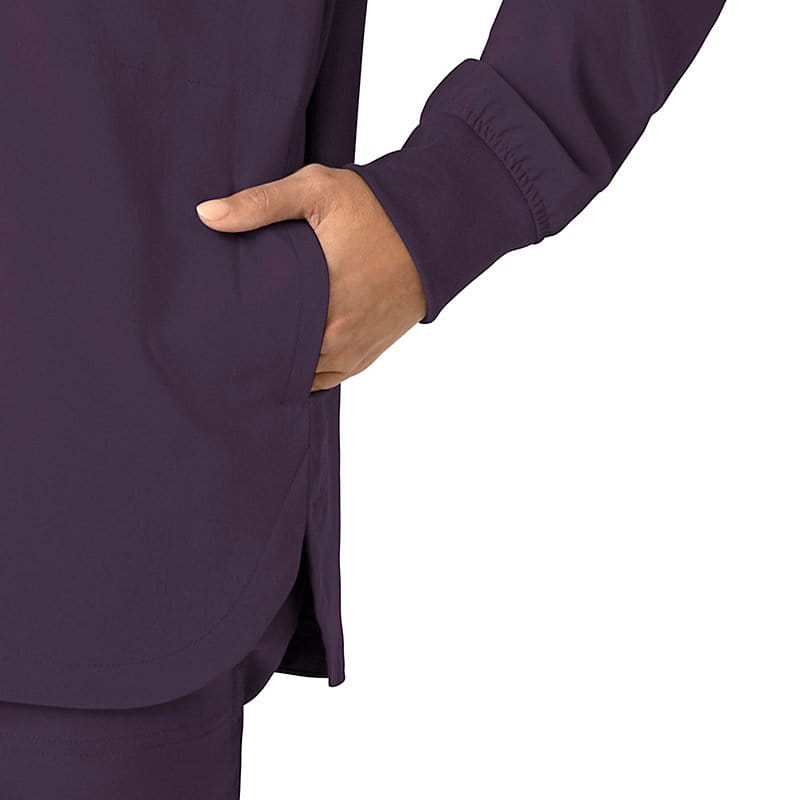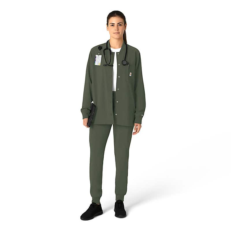 Versatility is the name of your game. You're always ready to switch gears, whether it's completing your own tasks or helping your fellow nurses with theirs. This women's shirt jacket does the same, blending the polished style of a shirt with the coverage of a jacket. It's the perfect layer for days when temperatures fluctuate or the air conditioning varies from room to room. Built for durability, it's made with a stretchy, comfortable fabric that includes micro ripstop to handle the rigors of your daily life at work. A knit collar and snap-div front accent the design for a cozy touch that adds just the right amount of tailoring. Keep everything where you need it with a chest pocket built with a pen slot plus internal loops for your badge or glasses. The lower front pockets are oversized, and there's even a pocket just for your phone for fumble-free access. This shirt jacket is part of our Force Cross-Flex collection, designed to help you excel on every shift. It wicks sweat and dries fast, and it's built to move with Rugged Flex™ stretch technology.