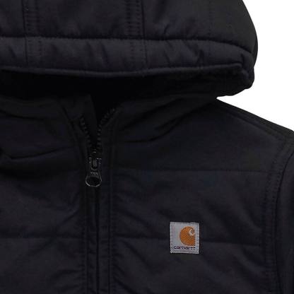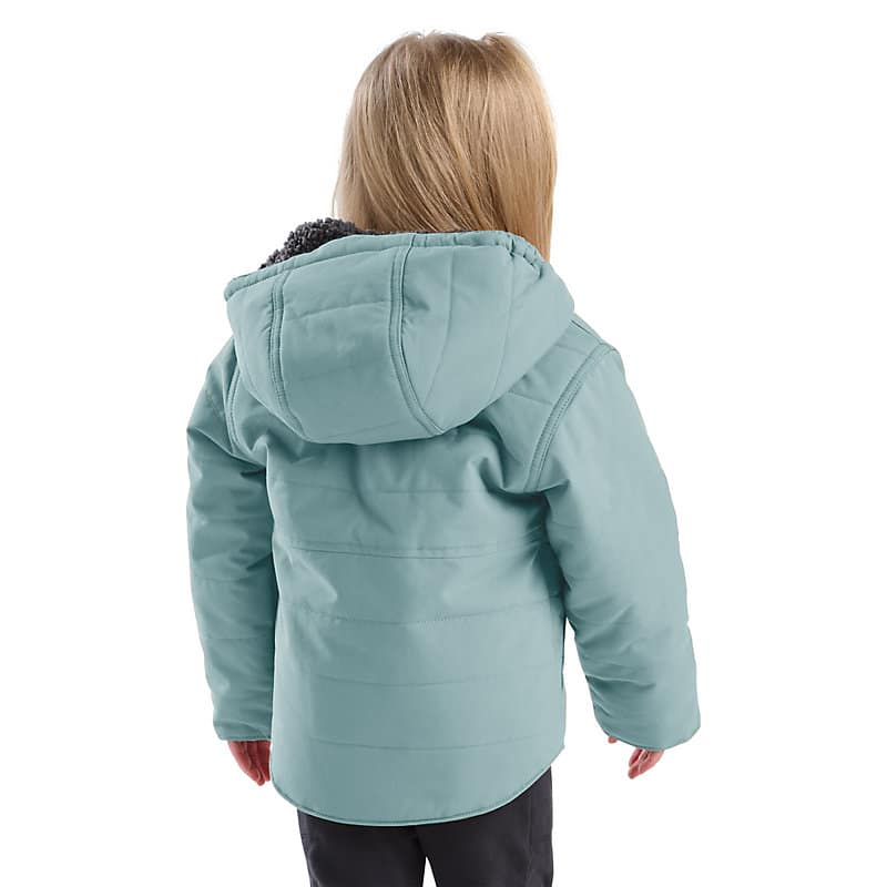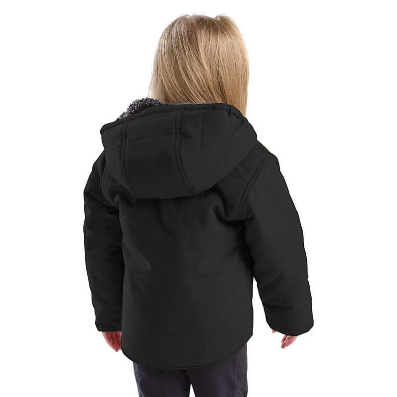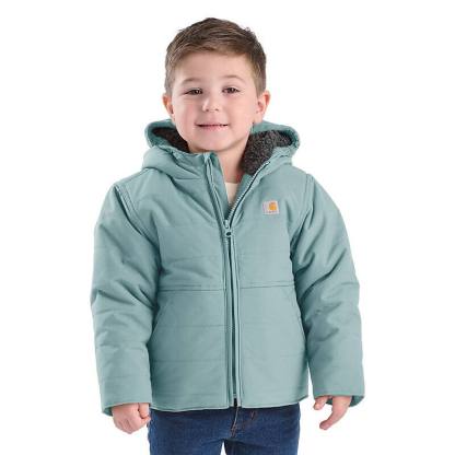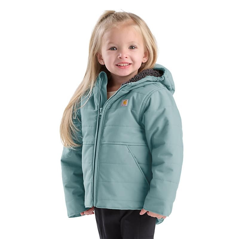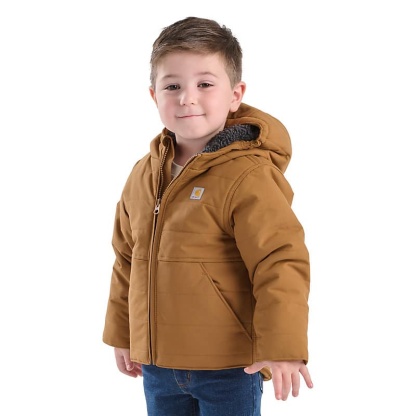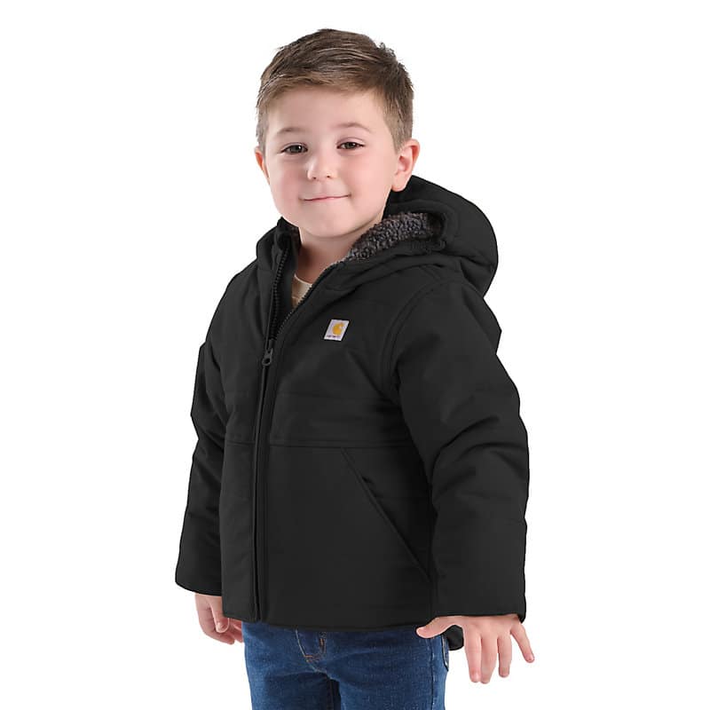 Don't let bad weather keep them cooped up. This Carhartt insulated hooded jacket gets babies and toddlers where they're going in comfort. The fleece lining keeps it warm on the inside, while the water-repellent nylon shell toughs it out against the elements.