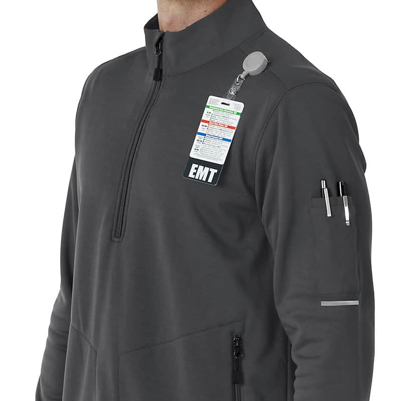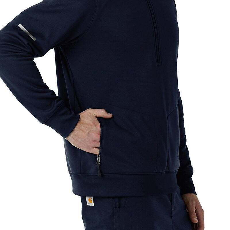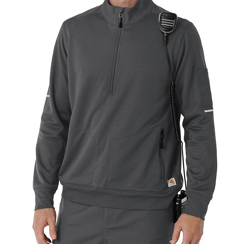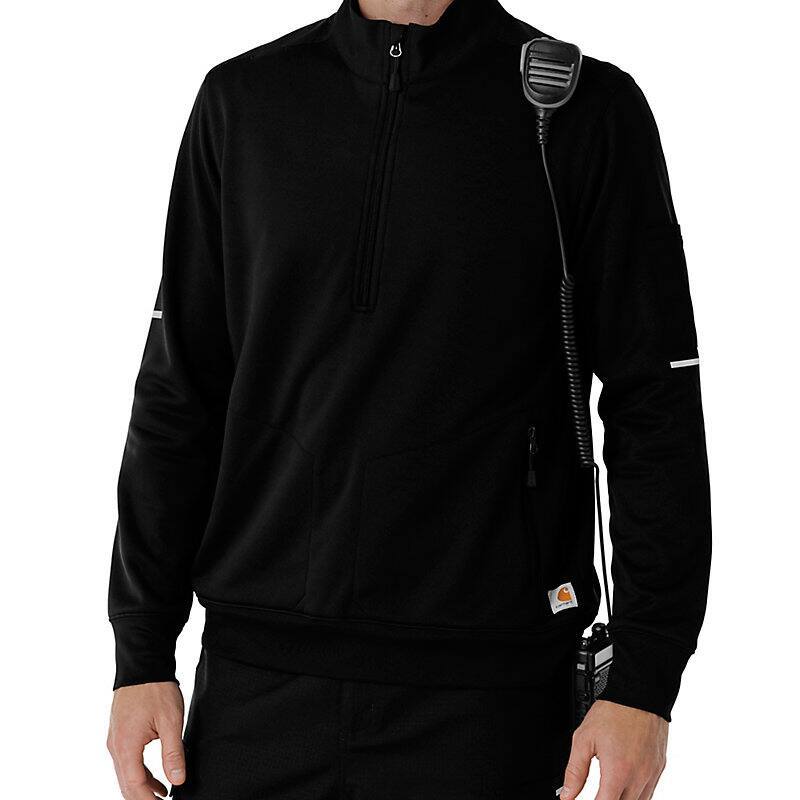 When your work takes you into unpredictable environments and challenging conditions, you need a layer that's ready for anything. This men's half-zip pullover is designed to provide reliable warmth and protection, no matter where your job leads you. Crafted from a cozy polyester fleece with a Durable Water Repellent (DWR) coating on the body, this half zip offers exceptional warmth and protection against light rain and moisture. The half-zip design allows for easy ventilation and temperature regulation, ensuring you stay comfortable in fluctuating conditions. Functionality is key, and this pullover is equipped with four pockets to keep your essentials organized and secure. Two of these pockets feature zippers, providing added security for valuables like your phone or wallet. Whether you're navigating a chilly worksite or braving the elements outdoors, this half zip is a versatile and reliable choice. With its combination of warmth, weather resistance, and practical features, this men's half-zip pullover is a must-have for anyone who demands versatility and performance from their gear. It's a dependable layer that will keep you comfortable and prepared, no matter what challenges come your way.