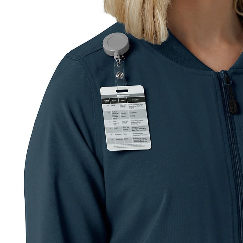 - One secure zip pocket, one top loading chest pocket with pen slot, two hand pockets with one pen slot, one internal stethoscope pocket