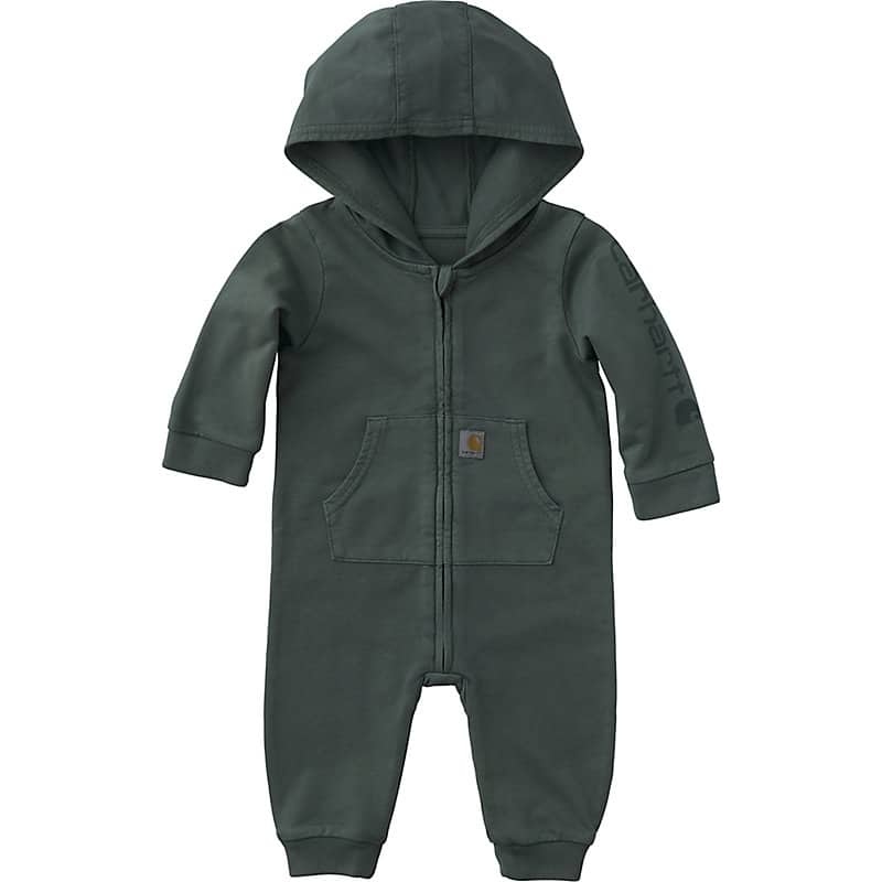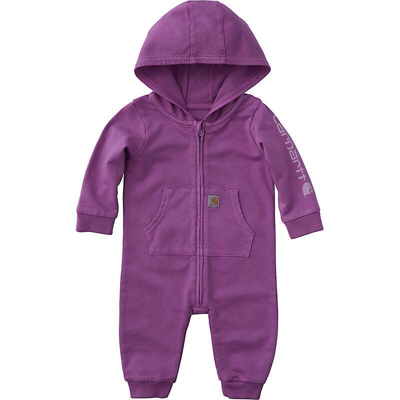 Baby's first Carhartt. These comfortable coveralls pass down the hardworking tradition with a classic logo on the sleeve. They're made to keep little ones warm outdoors, with heavyweight cotton fabric that's both durable and comfortable.